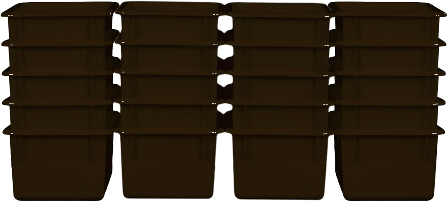 Wood Designs Cubby Storage Bin, Heavy Duty Plastic Containers for Kids Brown Cubby Tray Set of 20