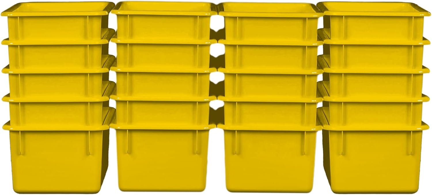 Wood Designs Cubby Storage Bin, Heavy Duty Plastic Containers for Kids Yellow Cubby Tray Set of 20