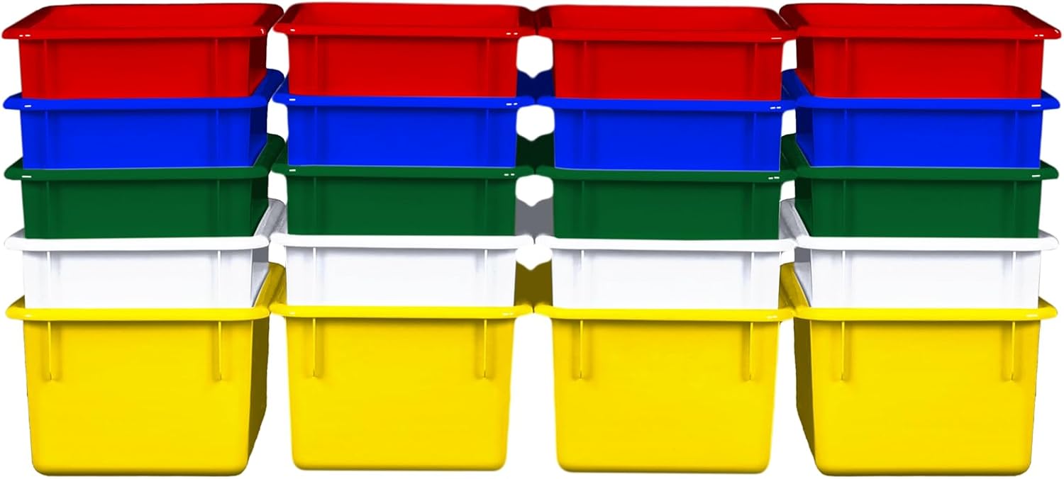 Wood Designs Cubby Storage Bin, Heavy Duty Plastic Containers for Kids Assorted Cubby Tray Set of 20