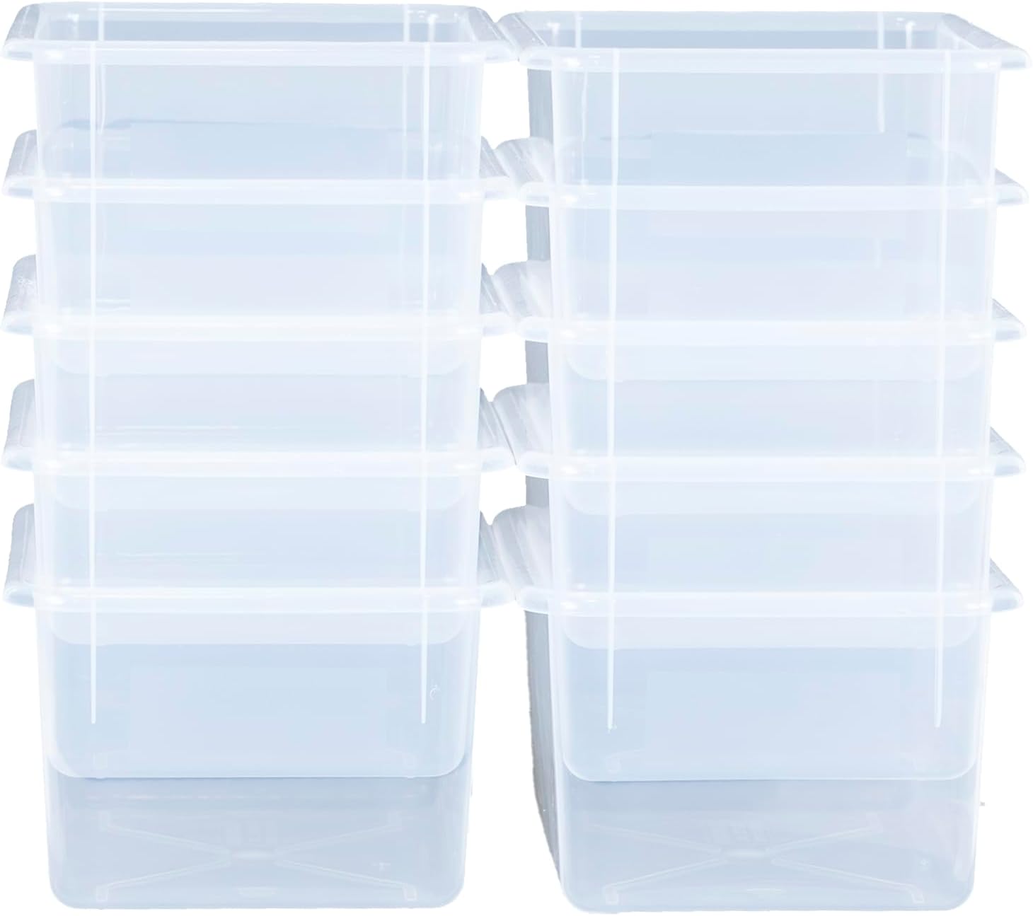 Wood Designs Cubby Storage Bin, Heavy Duty Plastic Containers for Kids Translucent Clear Cubby Tray Set of 10