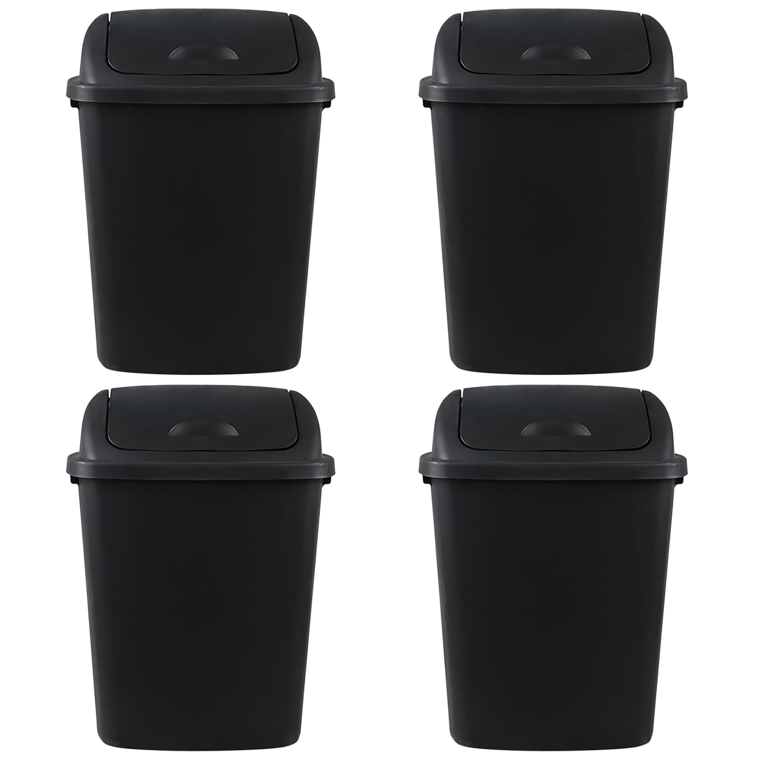 4 Pack 40 Liter Swing Lid Kitchen Garbage Can, Plastic Trash Can with Lid, Black
