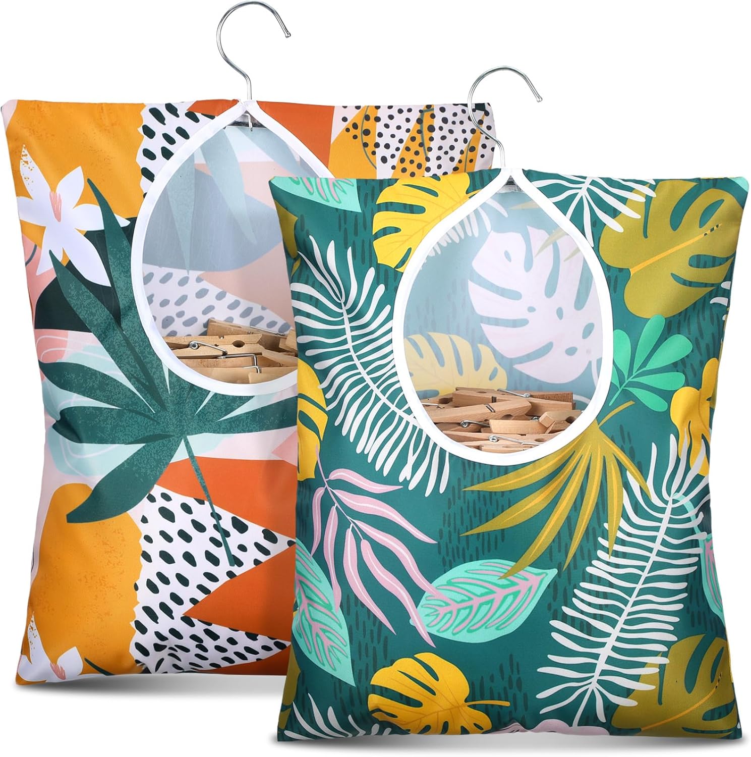 • Summer Theme: package includes 2 pieces of clothespin bags with hanger in different summer designs, both decorated with leaves pattern, full of tropical feeling, can add charm to your home; Proper quantity can satisfy your different daily use and replacement needs