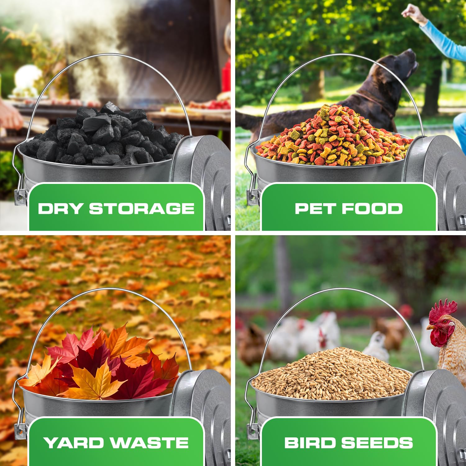 • Multipurpose Outdoor Garbage Can with Lid: Use as an ash bucket, bird seed bin, or outdoor waste container; its versatile design adapts to multiple storage and disposal needs