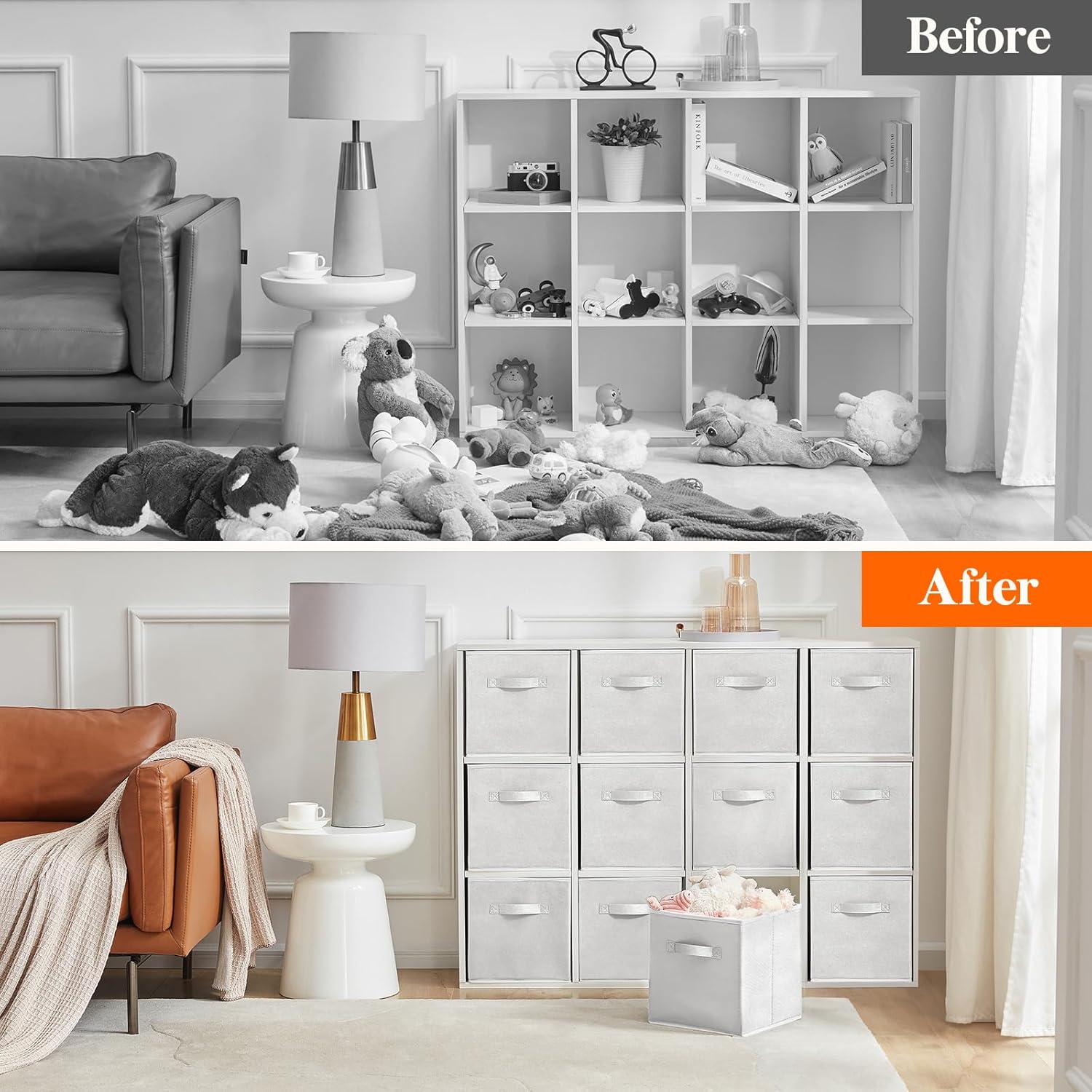 Lifewit 12 Packs Storage Cubes, 11 Inch Cube Storage Bins, Foldable Decorative Fabric Storage Baskets for Organizing Home Organizers with Handles for Shelves, Closet, White