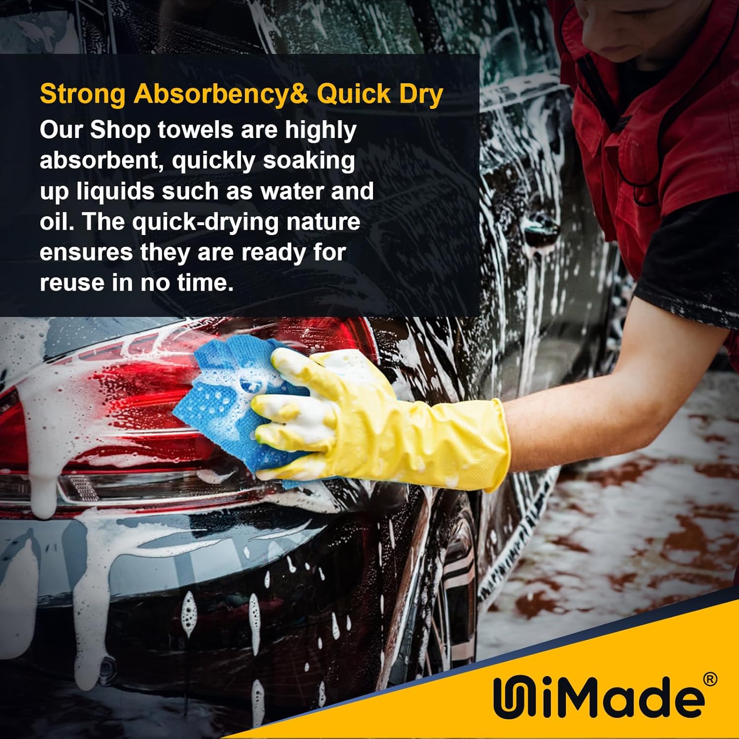 • Versatile Workshop Essential: UNIMADE shop rags find widespread use in automotive, workshops, garages, manufacturing facilities, housekeeping, Restaurant and diverse industrial settings, adeptly handling tasks like polishing, detailing, and various cleaning applications. Our cleaning towels are able to efficiently clean grease, oil, grime, fluid spills, tools, and parts, offering versatile and effective cleaning capabilities for various workshop needs