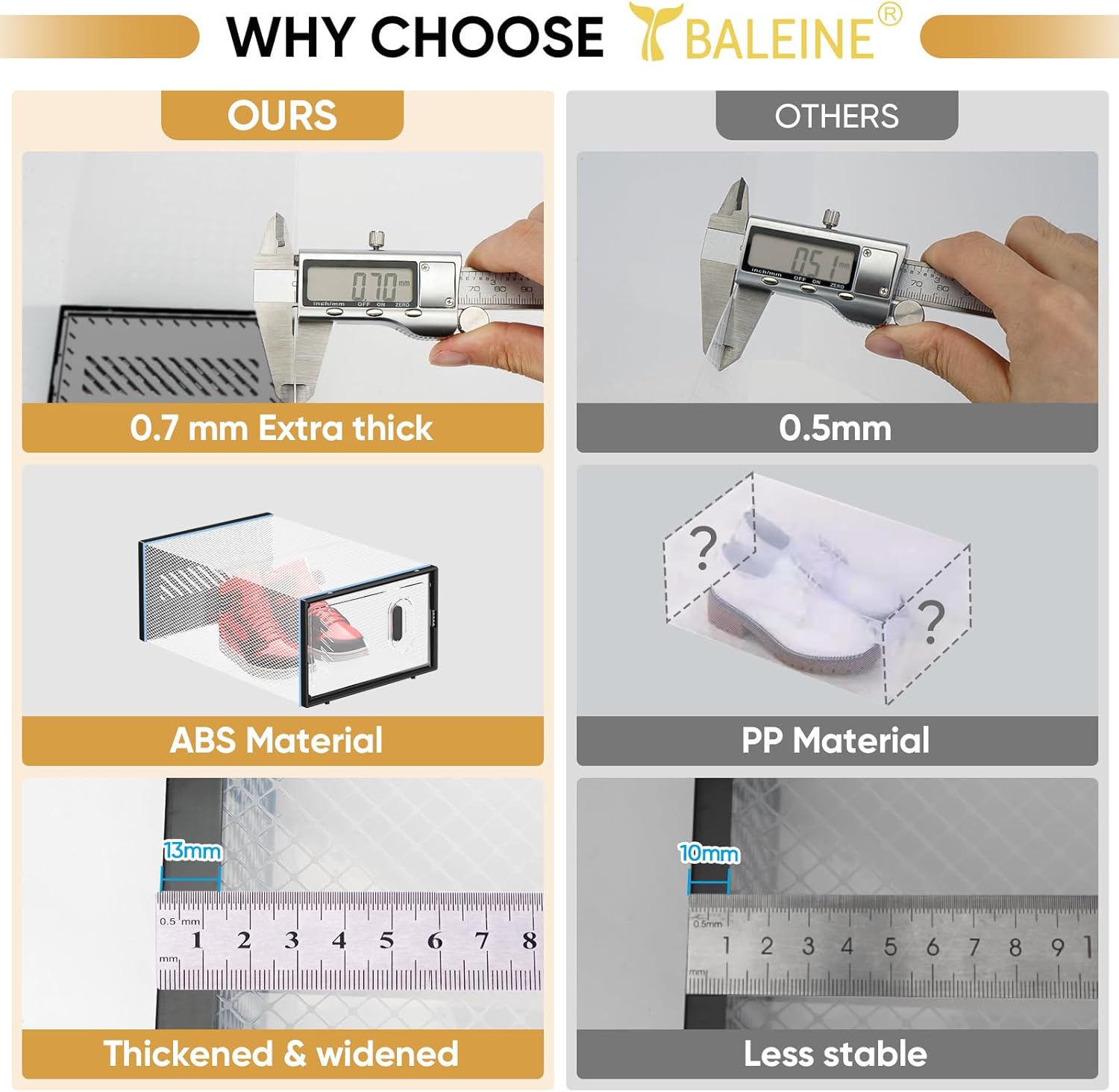 • [THICKENED MATERIAL] Clear shoe boxes are crafted from BPA-free thickened ABS and PP material, ensuring durability and longevity. They are sturdy and able to withstand daily use without cracking or breaking. Multiple ventilation holes on the back of the shoe case to ensure air circulation and prevent odors.
