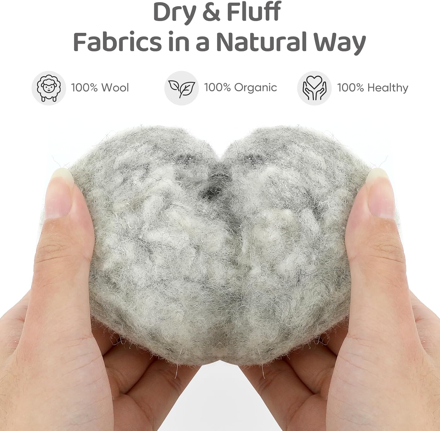 Wool Dryer Balls 6 Pack, Natural Fabric Softener, Dryer Balls Laundry Reusable, Reduces Clothing Wrinkles and Saves Drying Time (Gray)