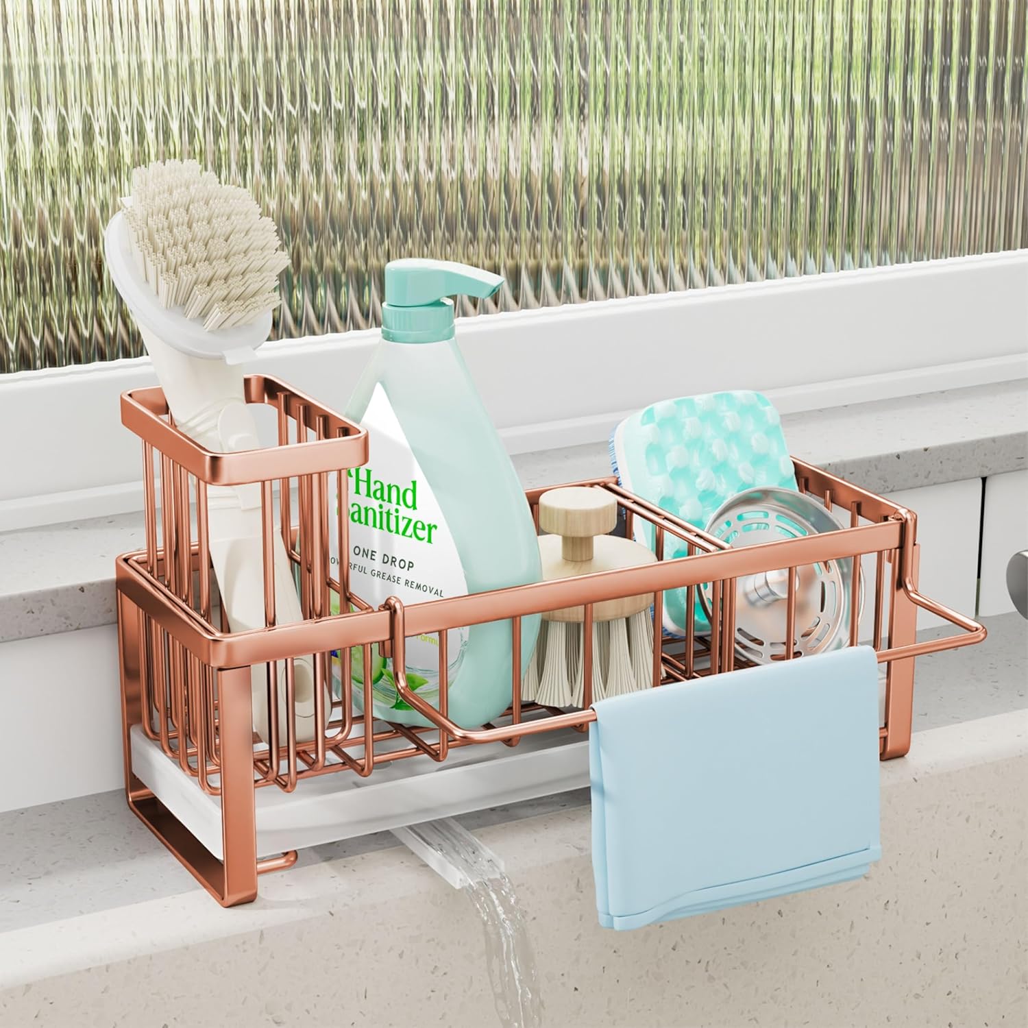 - [Removable Towel Bar Kitchen Sink Caddy]: The sink caddy sponge drain rack will kindly provide a removable towel rack for you to place your towels and dry them, you can just install the towel rack and remove the towel holder when you don't need it