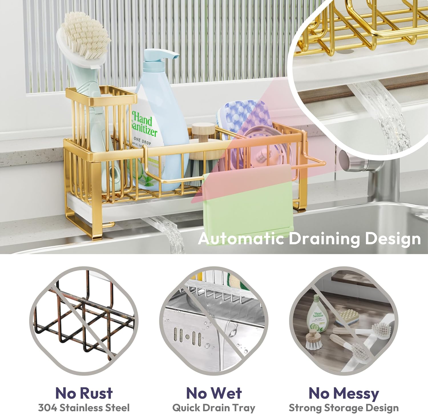 - [High Quality Stainless Steel Material]: Our kitchen sink organizer is made of 304 stainless steel, which is rustproof, waterproof and durable. The sink organizer sponge holder is very solid, and it can be rinsed directly, Don't worry about rust