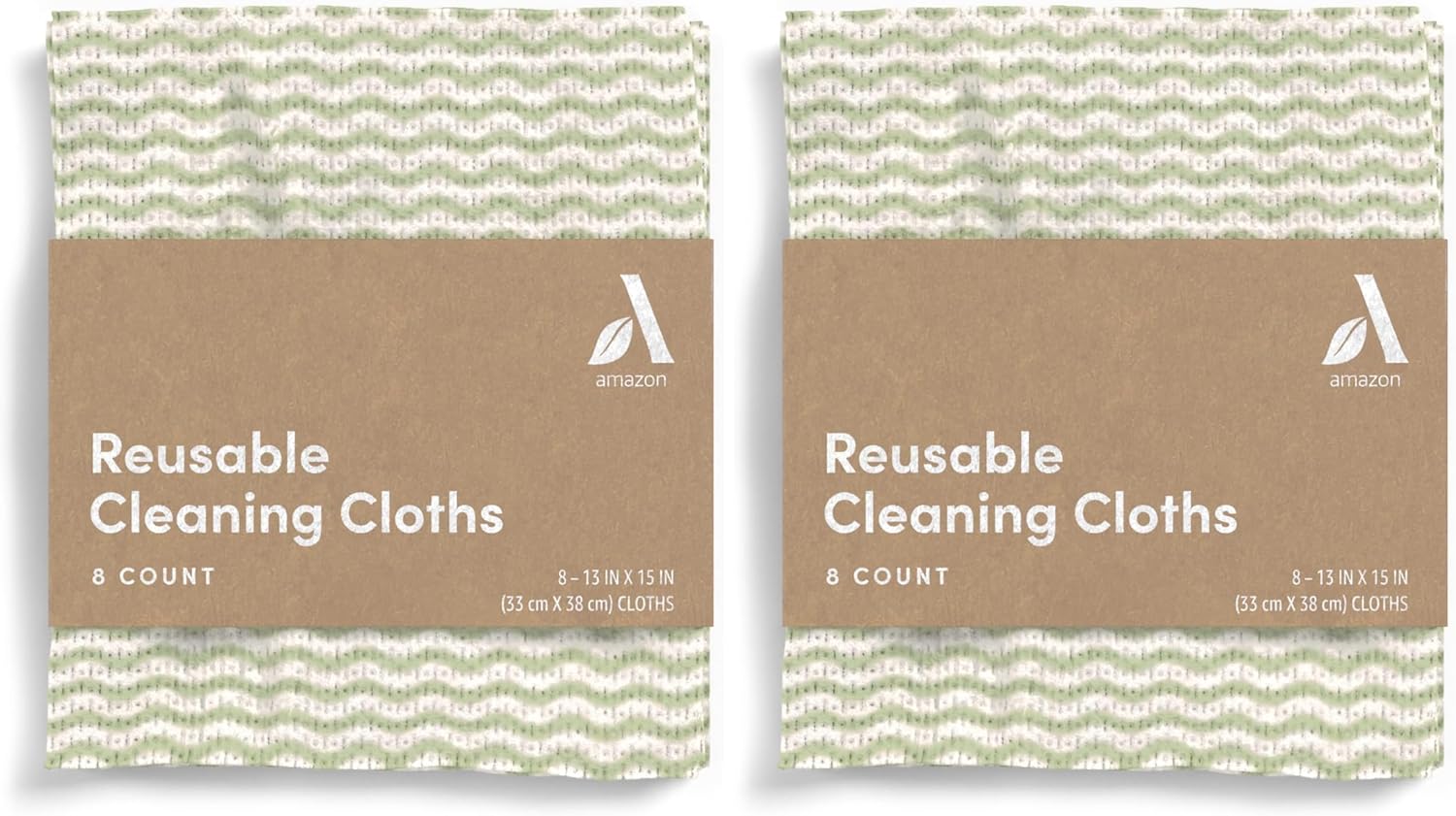 Amazon Aware All Purpose Cleaning Cloth, 8 Count, Pack of 2 Green, 13 x 15 Inch
