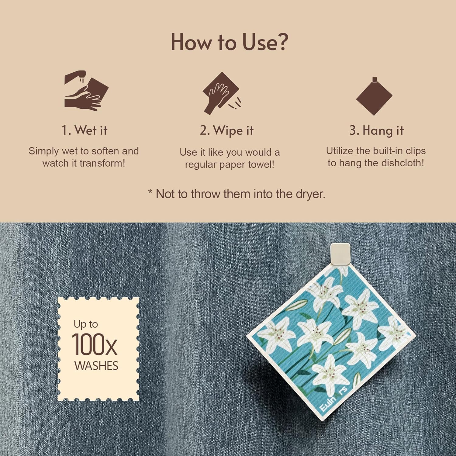 • Washable and Resuable: Tested to be reusable up to 200 times, our swedish dish cloths for washing dishes can replace up to 17 rolls of paper towels. Affordable, durable, and easy to care for, they offer a long-lasting alternative to disposable paper towels