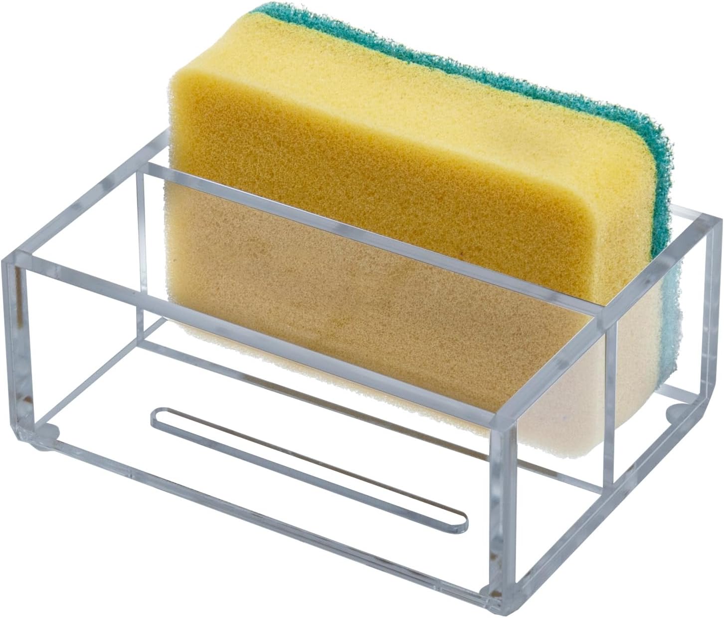 • Minimalist transparent acrylic sponge dish with dual storage compartments to conveniently keep sponges within reach on kitchen countertops