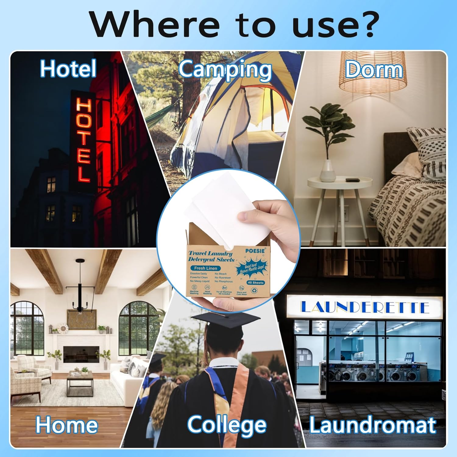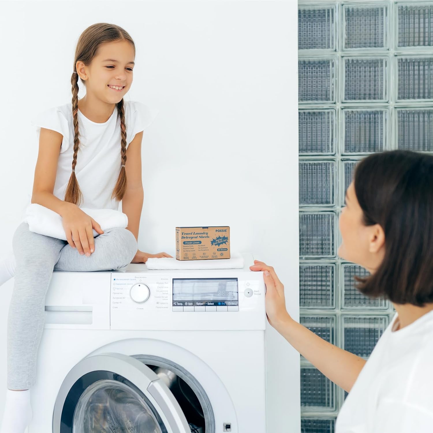 Poesie Travel Laundry Detergent Sheets 120 Sheets Liquidless Clothes Washing Strips Fresh Linen Scent (3 Pack 40 Count)