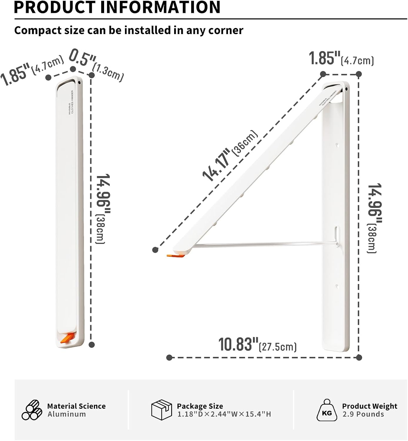 • 【Easy to Install】 Simply assembled and ready to use. Our wall mounted drying rack package comes with glue and screw mounting options, so you can install it right away and enjoy a convenient space for storing your clothes. If you have any questions about the wall mounted drying rack, please contact us, we will provide you with satisfactory service