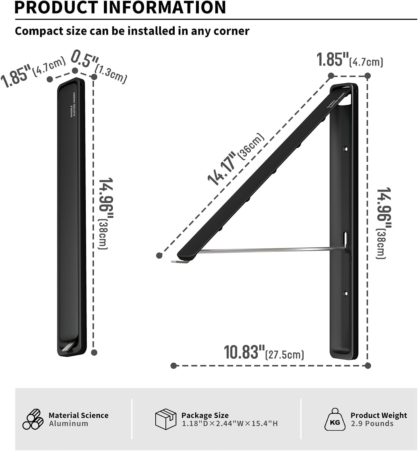 • 【Easy to Install】 Simply assembled and ready to use. Our wall mounted drying rack package comes with glue and screw mounting options, so you can install it right away and enjoy a convenient space for storing your clothes. If you have any questions about the wall mounted drying rack, please contact us, we will provide you with satisfactory service