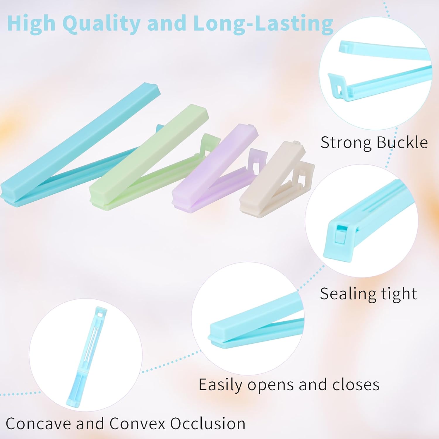 • Light and Fun Colors: The sealing bag clips come in light colors, adding a touch of fun and color to your kitchen storage. The colorful clips also make it easy to identify and differentiate between different bags, promoting organization