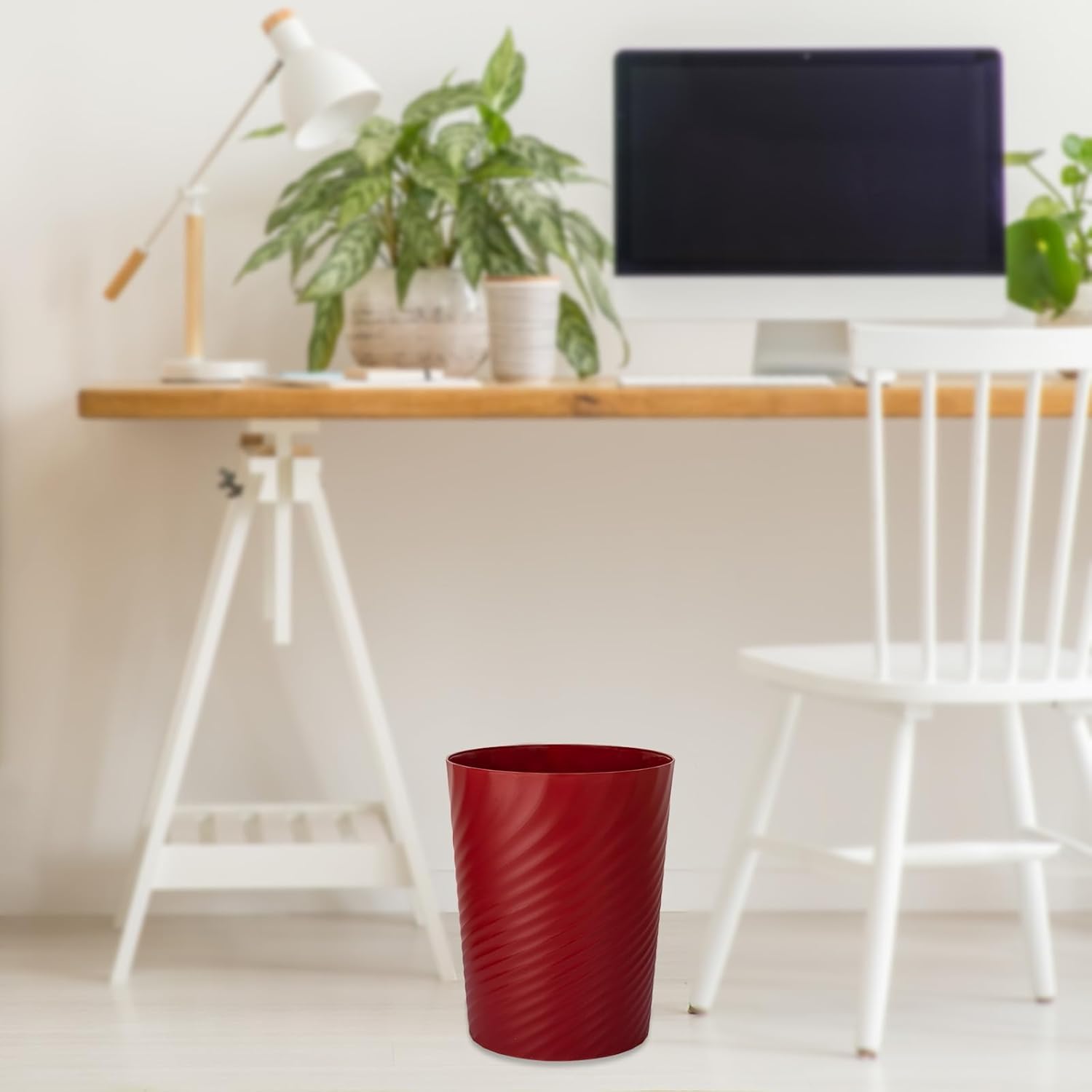 • 【Specification】 Dimensions Measure: 7.8-Inches x 6.5-Inches x 10-Inches Tall and with a capacity of 1.8-Gallon, our wastebasket is suitable for your needs. Use it for small trash, recycling cans, paper waste and junk mail for the office, or cotton, cleansing pads, cotton swabs and more in the bathroom.