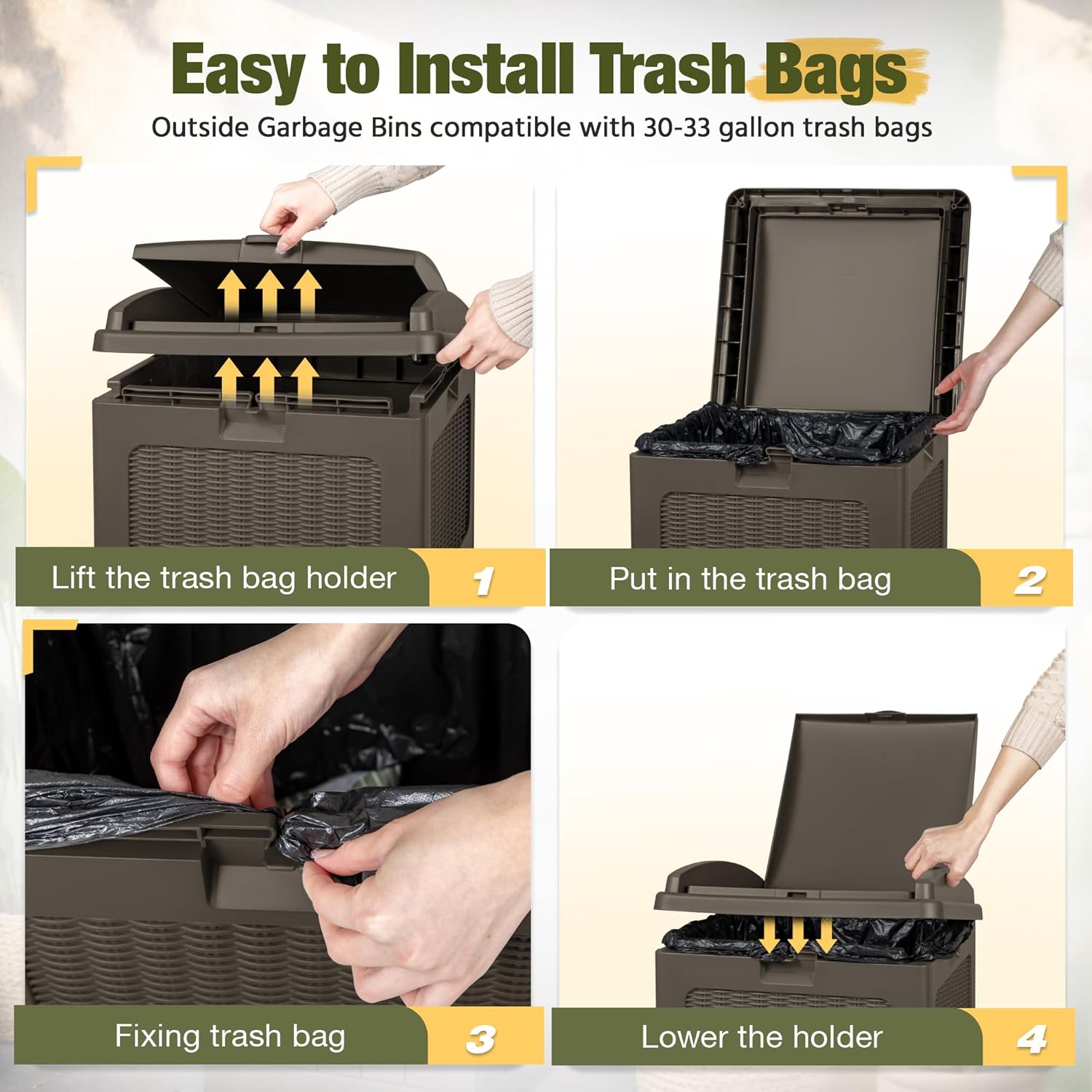 • Various Outdoor Scenarios: Our outdoor trash cans are perfect for use on patios, pools, poolside, porches, gardens, backyards and more.