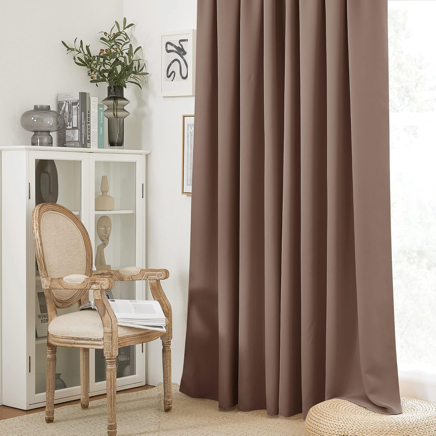 RYB HOME Curtains for Bedroom 72 inches Long, Blackout Thermal Insulating Window Treatment Drapes for Living Room Bathroom Basement Laundry Classroom, W 34 x L 72, Mocha, 2 Panels