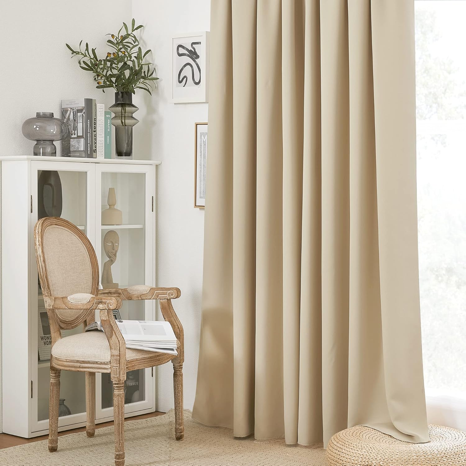 RYB HOME Curtains for Bedroom 72 inches Long, Blackout Thermal Insulating Window Treatment Drapes for Living Room Bathroom Basement Laundry Classroom, W 34 x L 72, Biscotti Beige, 2 Panels