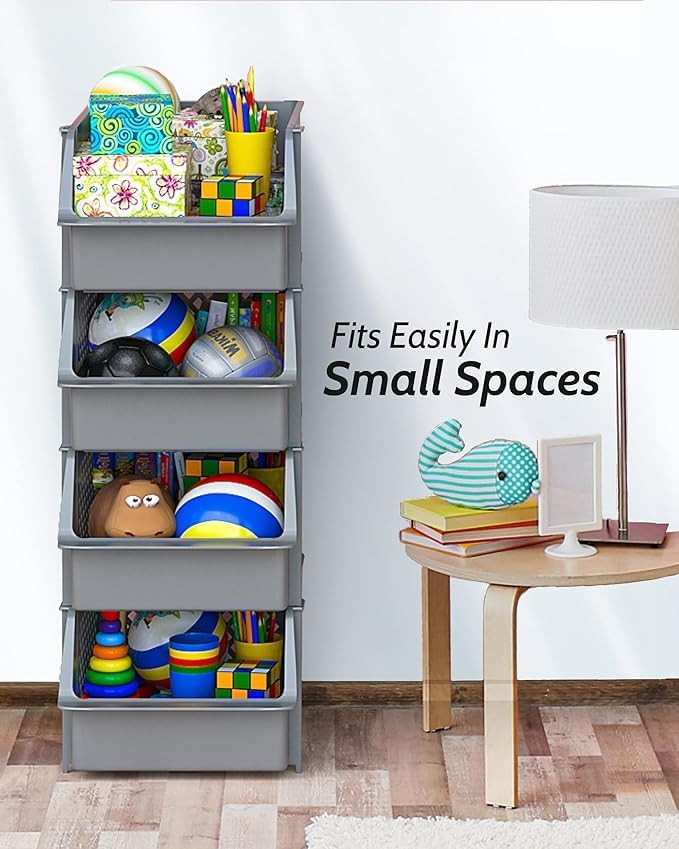 • KEEPS ESSENTIALS ORGANIZED AND VISIBLE - Stackable bins hold foods, toys, utensils, and toiletries without bending off. Set of 12, Each bin size: 14.5” x 11.5” x 7”.