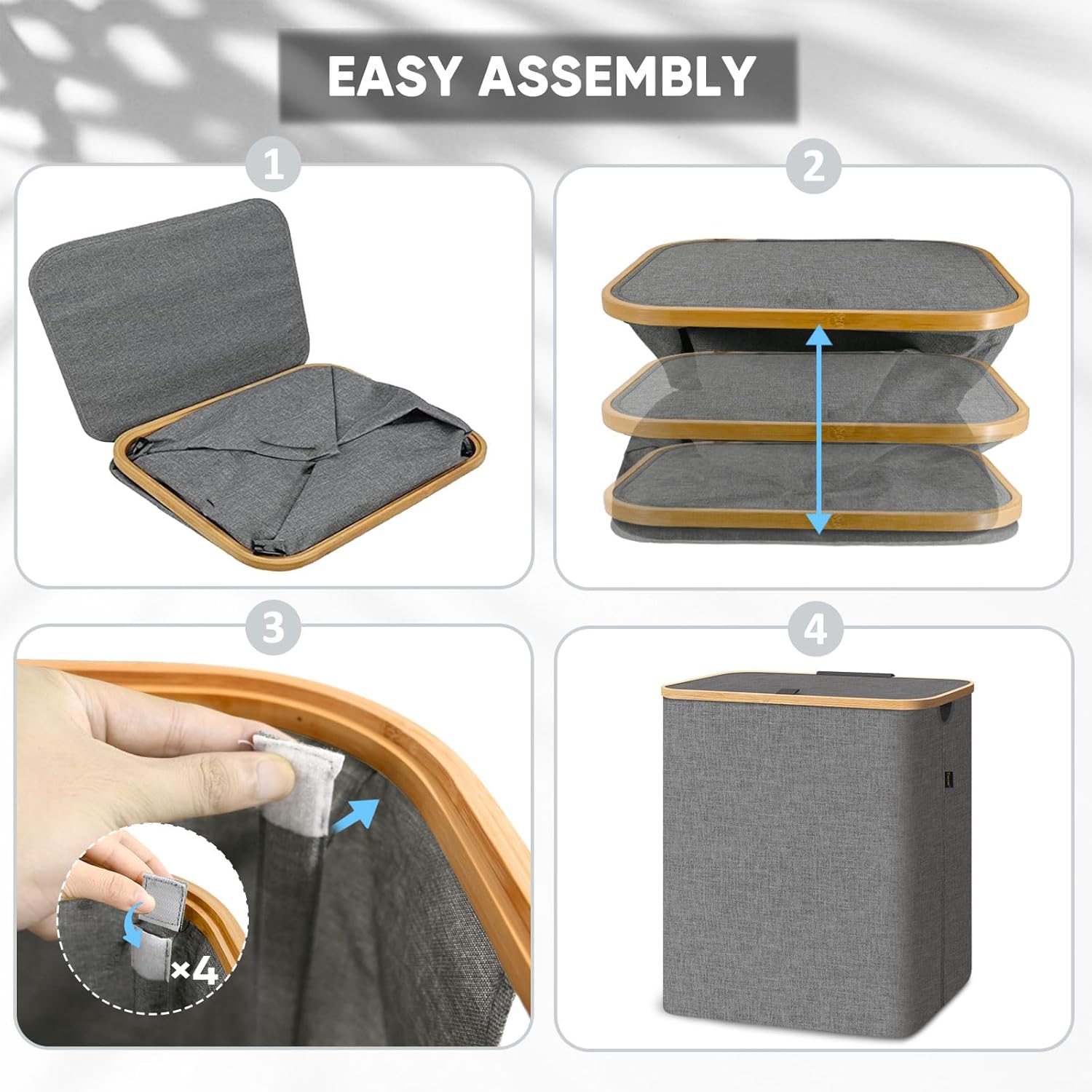 • [DURABLE AND ECO-FRIENDLY] We care about the environment, which is why our laundry hamper is made from sustainable bamboo rim. Bamboo is known for its exceptional strength and durability, ensuring this clothes hamper's handle will withstand the test of time. By choosing our eco-friendly laundry basket organizer, you're making a conscious decision to reduce your carbon footprint.