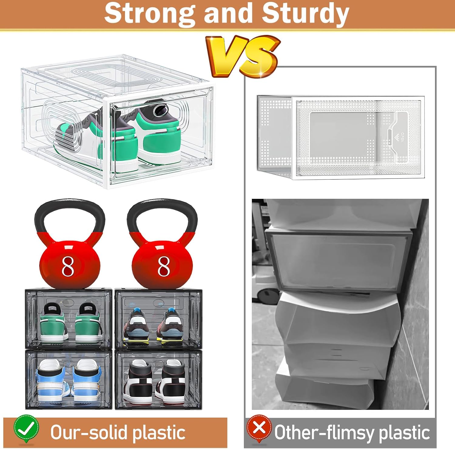 • 【Easy to Assemble & Sturdy Hard Structure】Say goodbye to those flimsy plastic shoe storage boxes,shoe case are made of high quality and sturdy plastic material.And you can just complete the assembly process in a few simple steps