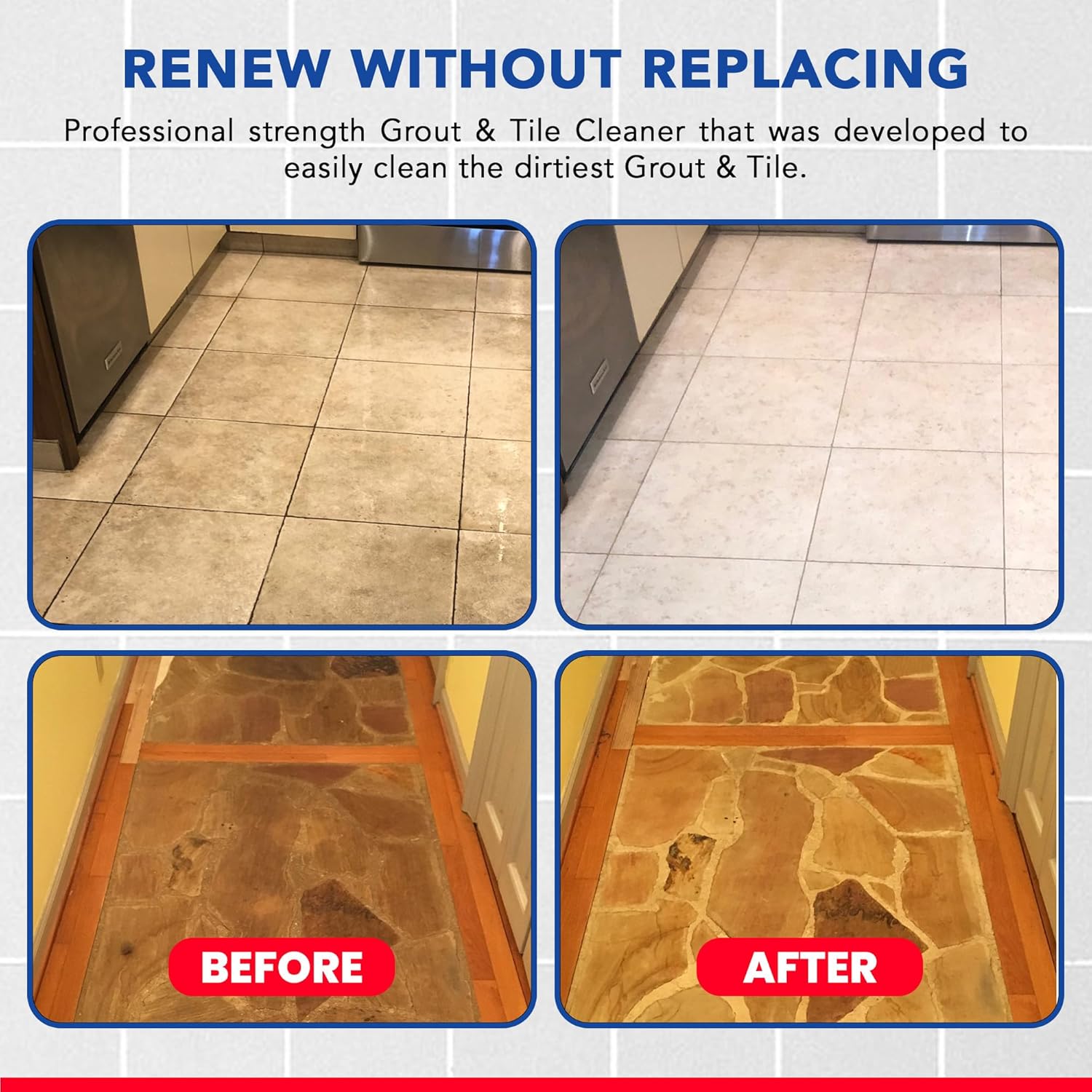 • Our grout brush is better used with our grout cleaner bottle. Our grout cleaner removes all stains and cleans grout without any effort.