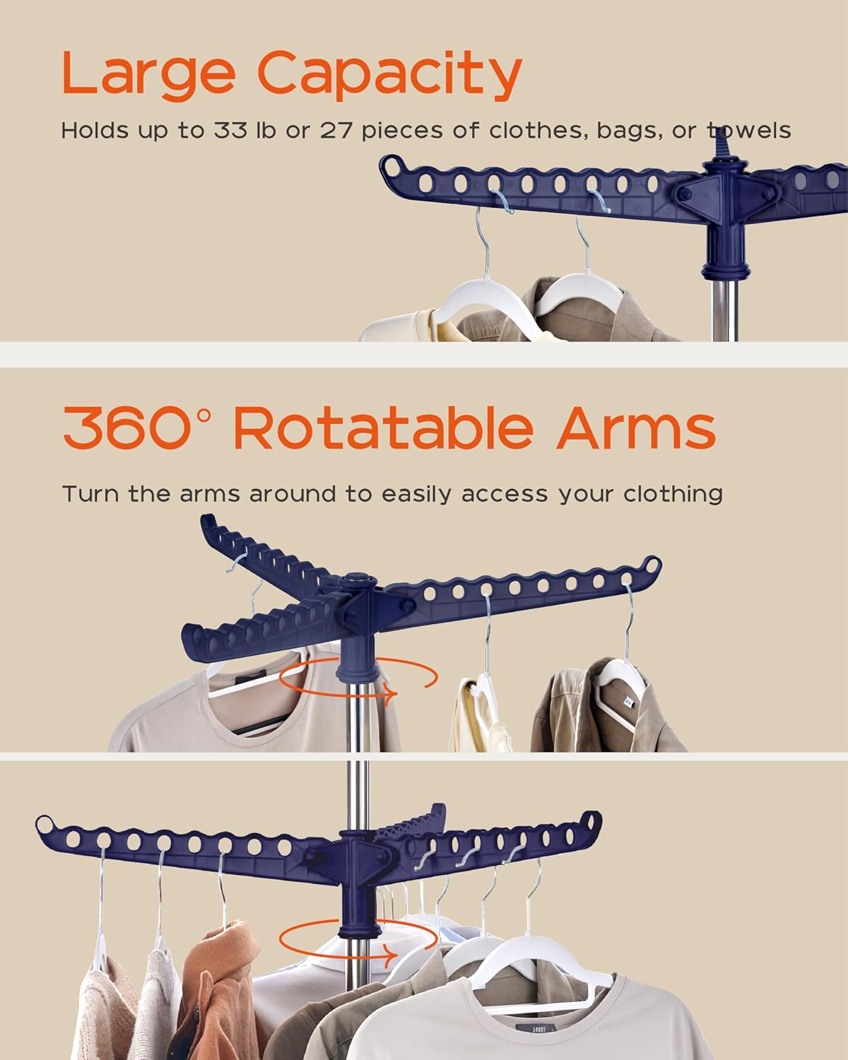 • [360 Rotating Clothes Rack] Equipped with a 360-degree swivel design, this laundry drying rack provides you with the convenience of hanging and accessing your clothes.