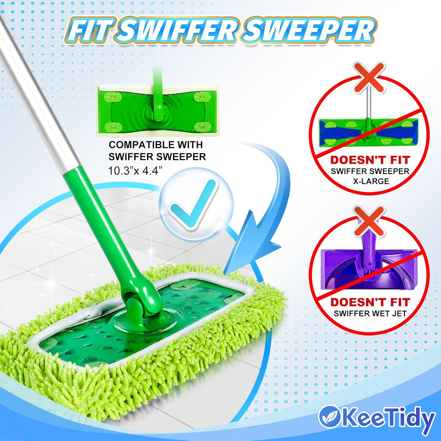 - Compatibility- These mop pads refills fit for Swiffer Sweeper dust mop and wet mopping starter kit as wet pads and dry pads. NOT for Sweeper XL or Sweeper Vacuum (Note:Mop is NOT Included)