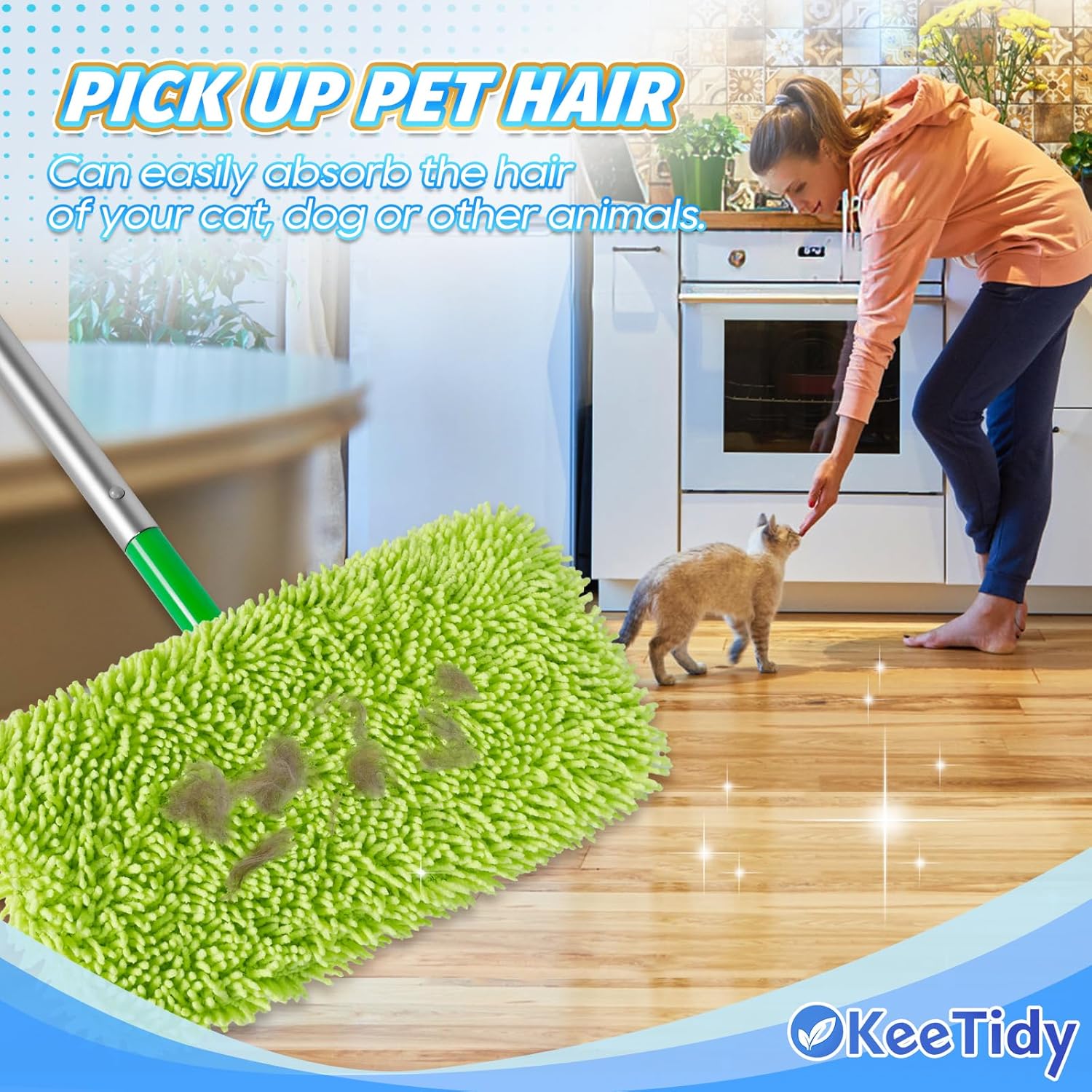 - Reusable Mop Pads- These dry sweeping cloths can be washed up to 100 times to replace hundreds of disposable pads, and you can also use your own cleaners instead of those chemical-laden cleaning towels. A greener solution that saves the planet, reduces landfill waste and saves you money. Besides, super absorbent microfiber fabric with wide coverage for mopping will achieve thorough cleaning meanwhile leave no streak or puddle, making your hardwood floor look new again