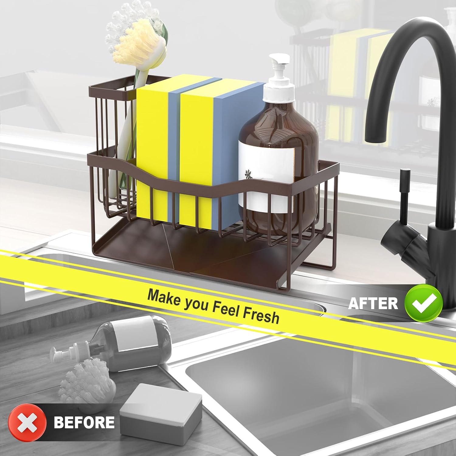 - 【Satisfactory Guaranteed】 Do Not Hesitate! Click ”Add To Cart” to Level Up Your Kitchen Organization! Kitchen sink caddies can be used as soon as they are received, do not require installation, and are widely used in bathrooms or counters, making them a desirable gift. If you have any questions during this process, please contact us in time and we will solve it for you in time.