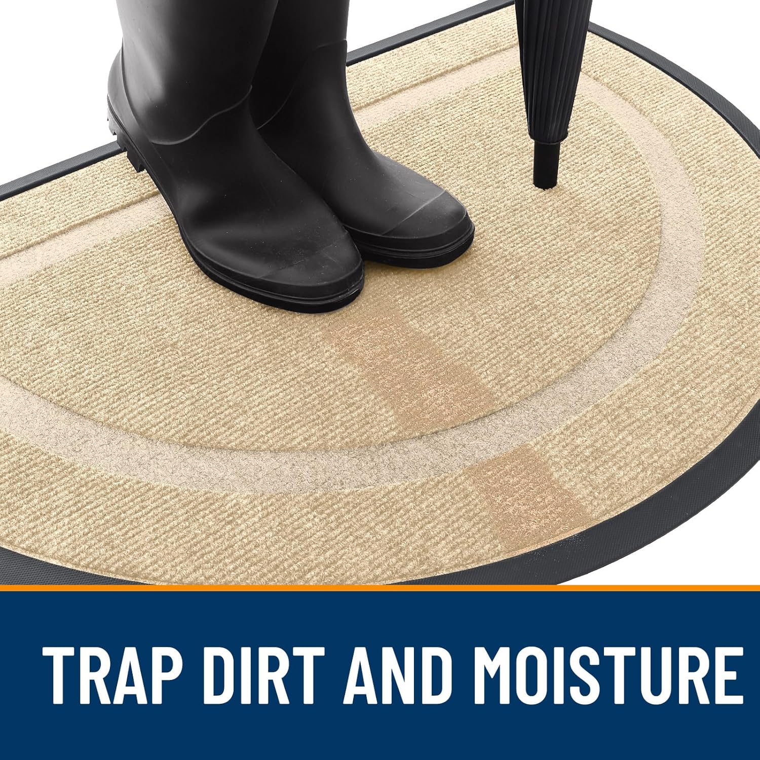 OLANLY Half Circle Door Mat Indoor Outdoor Entrance Welcome, Waterproof All-Season, All-Weather Doormat, Sturdy Natural Rubber, Low Profile, Easy Clean Patio Porch Entryway Mat, 29.5x17, Beige