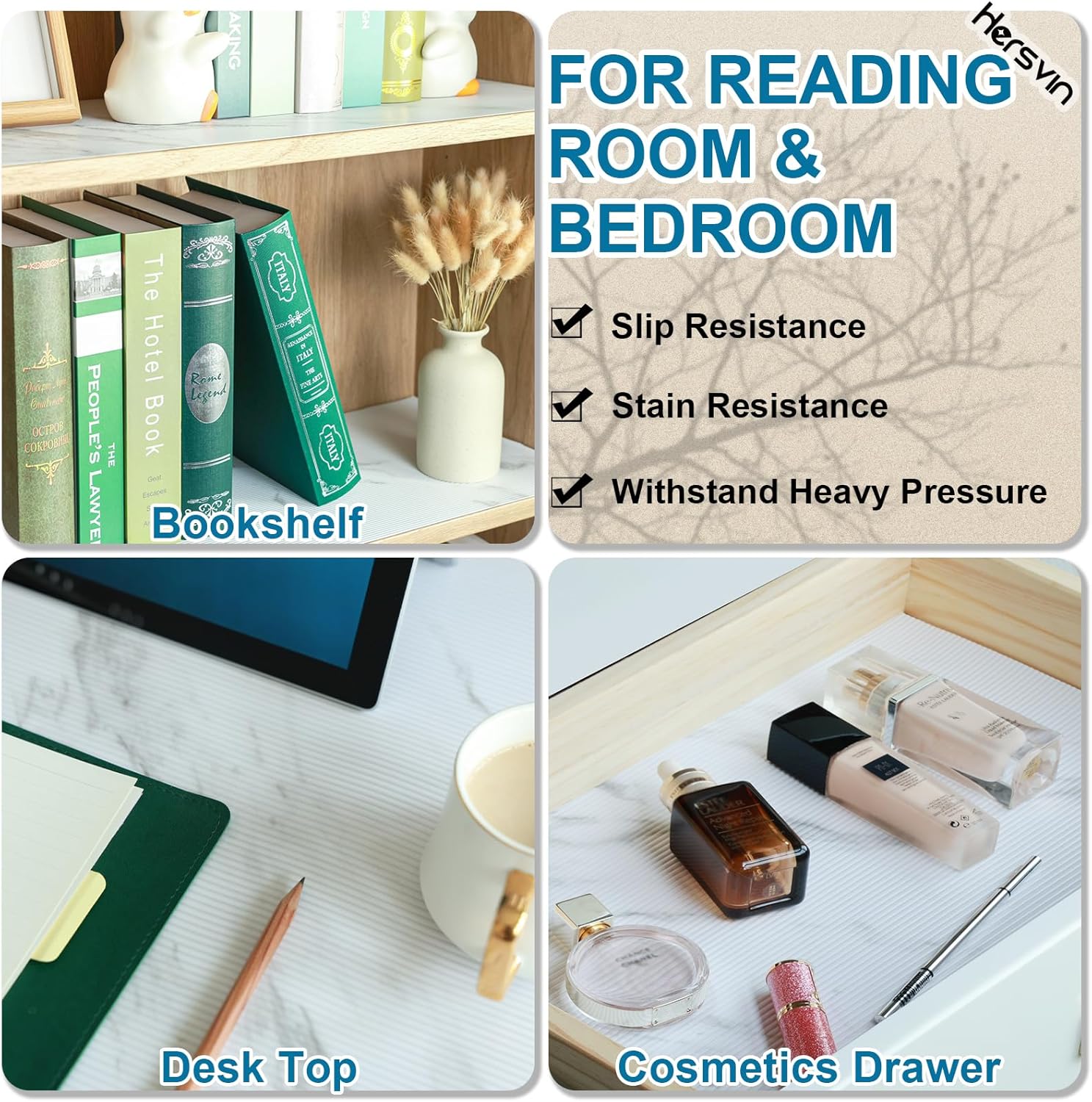 Shelf Liners 24 in x 20 ft EVA Drawer Mats, Non-Adhesive Cupboard Protector, Kitchen Cabinet Lining Fridge Liner (White Marble Stripe, 61x610cm)