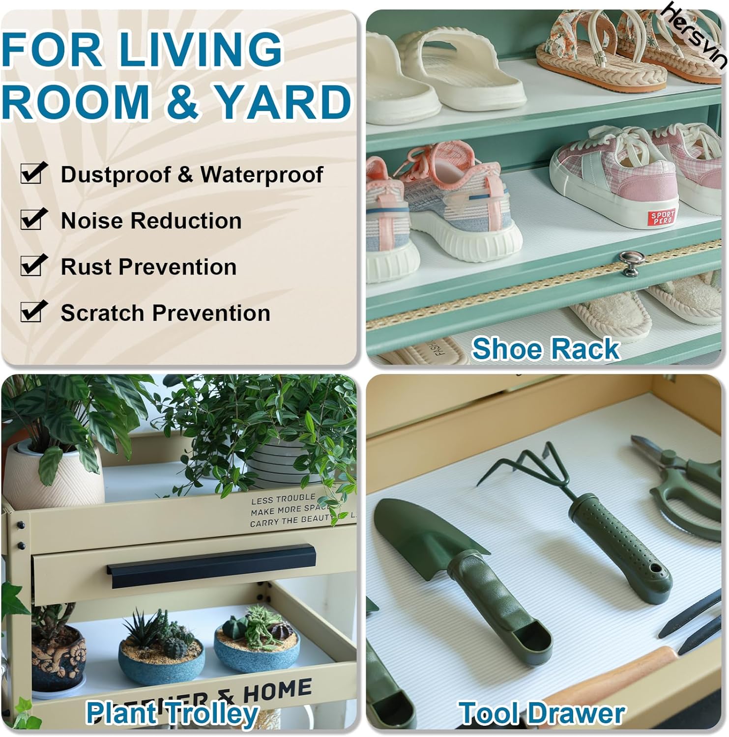 • HIGH-GRADE MATERIAL: Made of food-grade EVA, the liner can contact with fruits & vegetables; suitable thickness, weight, flexibility, toughness provide good furniture cushioning & protection to avoid greasy, dirty, stress cracks, scratches, noise, etc.