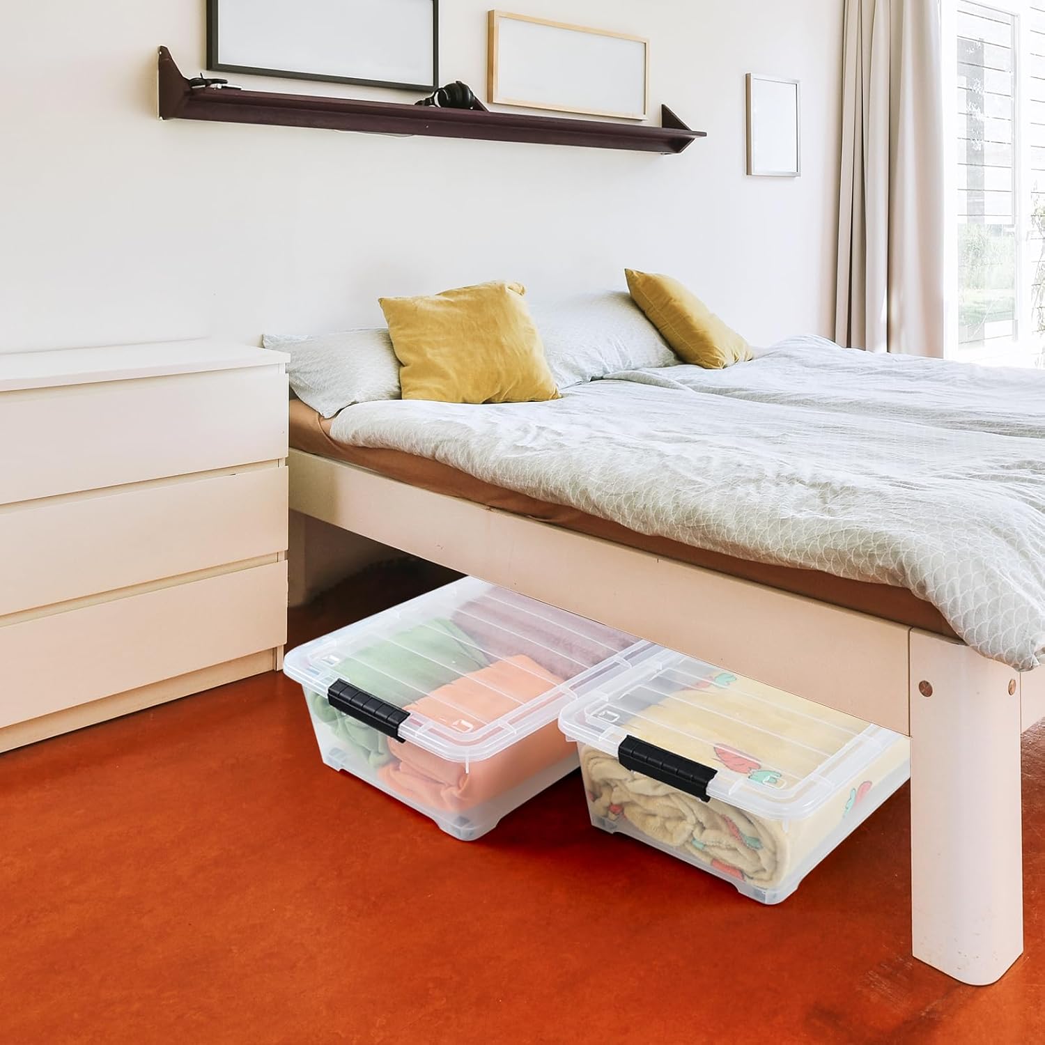 20 Quart Under Bed Plastic Storage Bins, 4-Pack Clear Under Bed Storage Box with Wheels