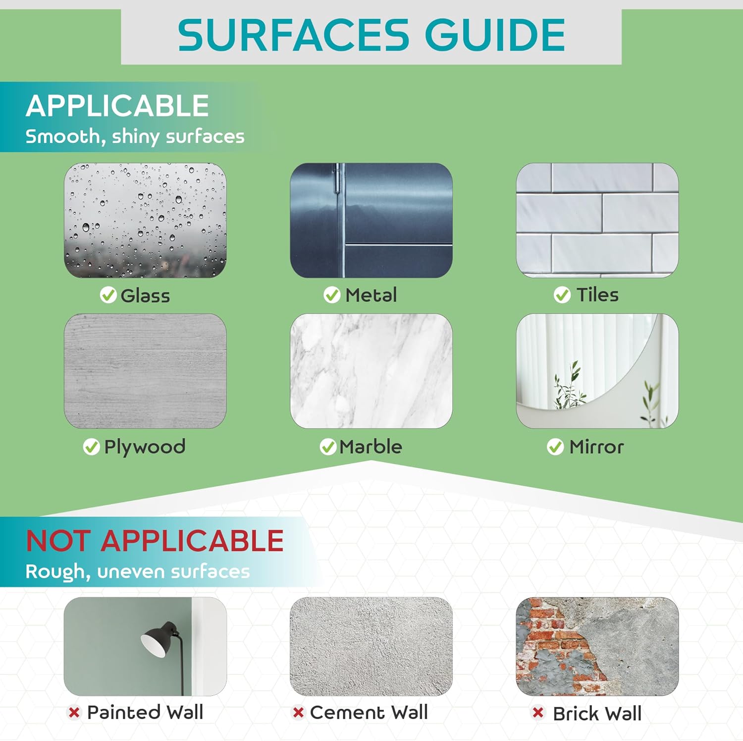 • EASY INSTALLATION - No screws or tools needed. These hooks stick to any flat surface - plywood, marble, tiles, mirror, glass, or metal. Just peel and stick to apply in the bathroom or kitchen.