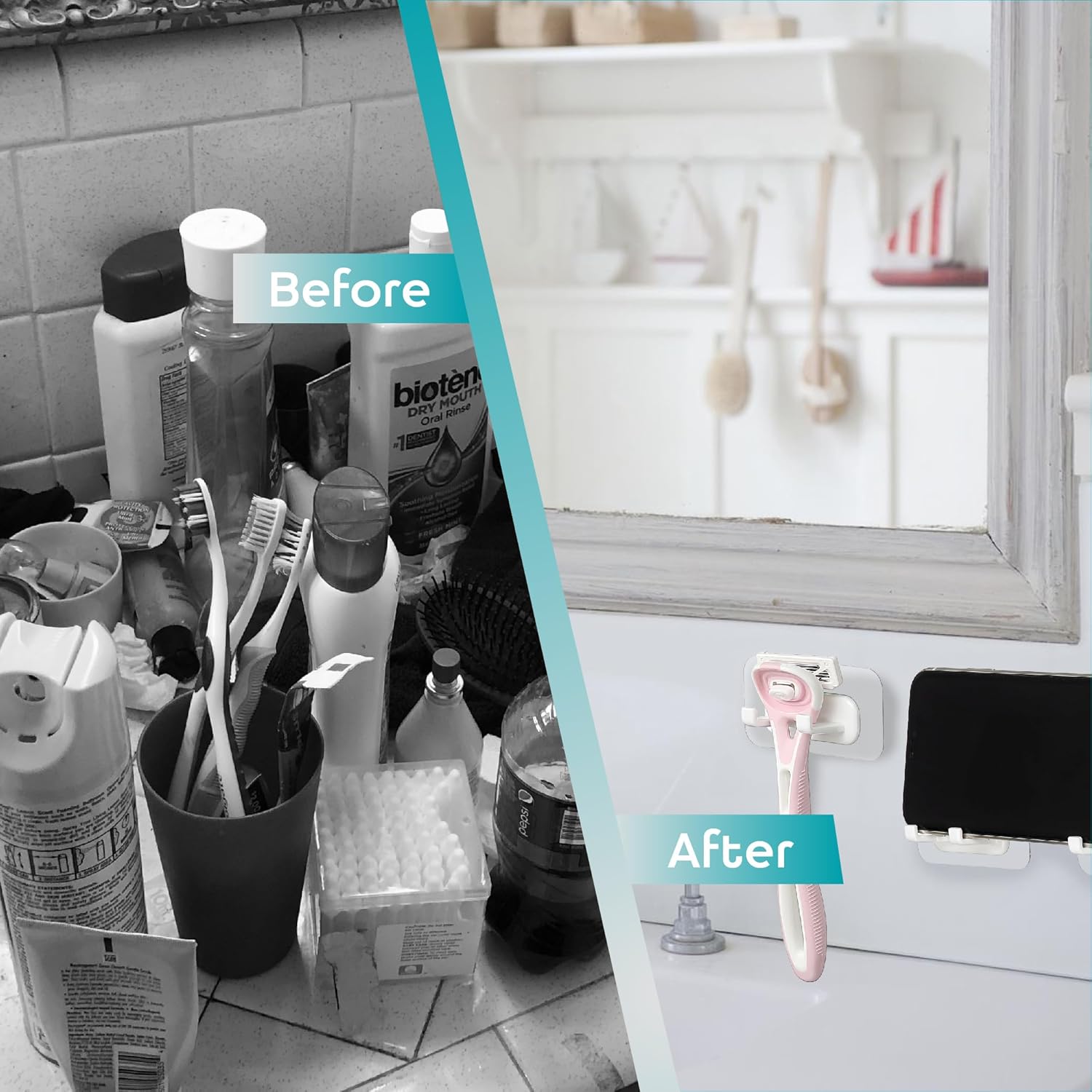 • WIDE APPLICATION—Our wider open razor holder is compatible with most brand razors, such as Gillette and Venus razors. It is great for hanging razors, towels, bath brushes, kitchenware, and more.