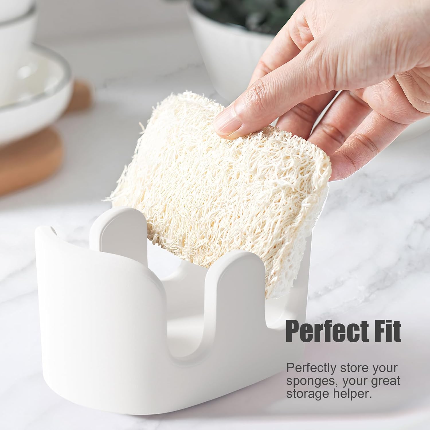 Double Sponge Holder, 2 Slot Diatomite Stone Sponge Holder, Absorbent Sponge Stand for Kitchen Sink, Quick Dry Sponge Caddy Kitchen Sink Organizer, White