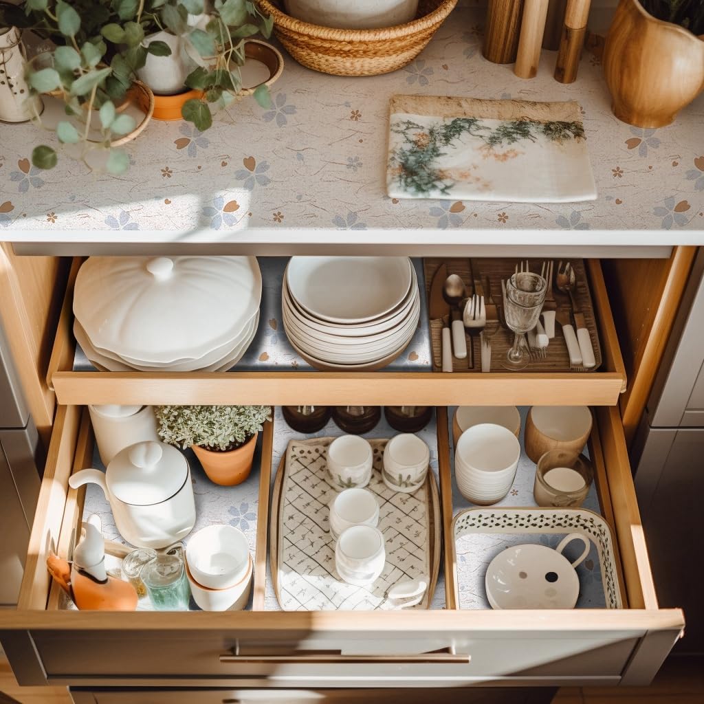 • SHELF LINER: Unique drawer liner design makes you stand out from the crowd of drawer liners. Made from premium thickened material, these non-adhesive shelf anddrawer liners are durable, tear-resistant, and reusable.