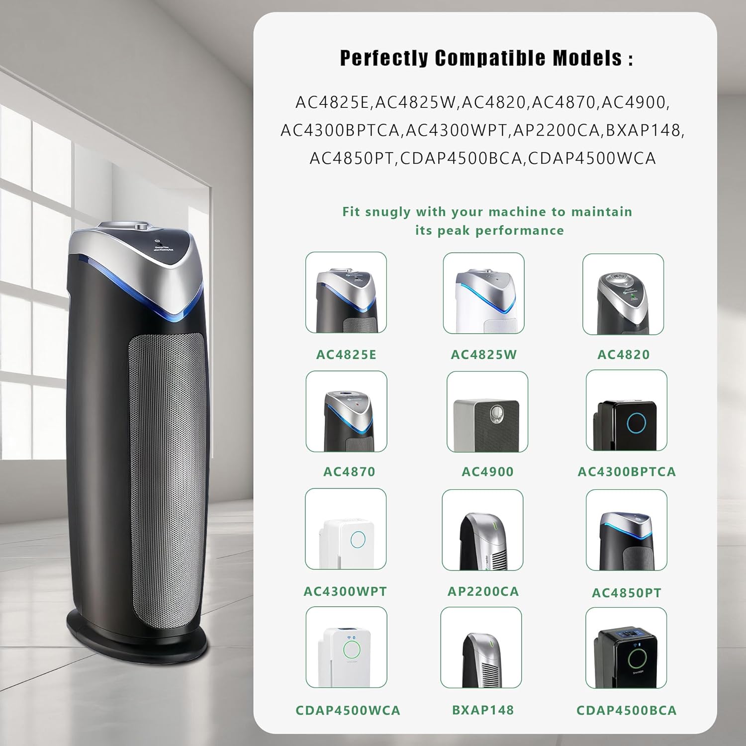 • 【Compatible Models】FLT4825VO FLT4825 HEPA Filter B Replacement is fully compatible with air Cleaner purifier models AC4825E,AC4825W,AC4870,AC4820,AC4300BPTCA, AC4300WPT,AC4900CA,AC4850PT,CDAP4500BCA,CDAP4500WCA,AP2200CA and BXAP150.NOTE:This is not a OEM product.Any use of the brand name or model designation for this product is made solely for purposes of demonstrating compatibility.