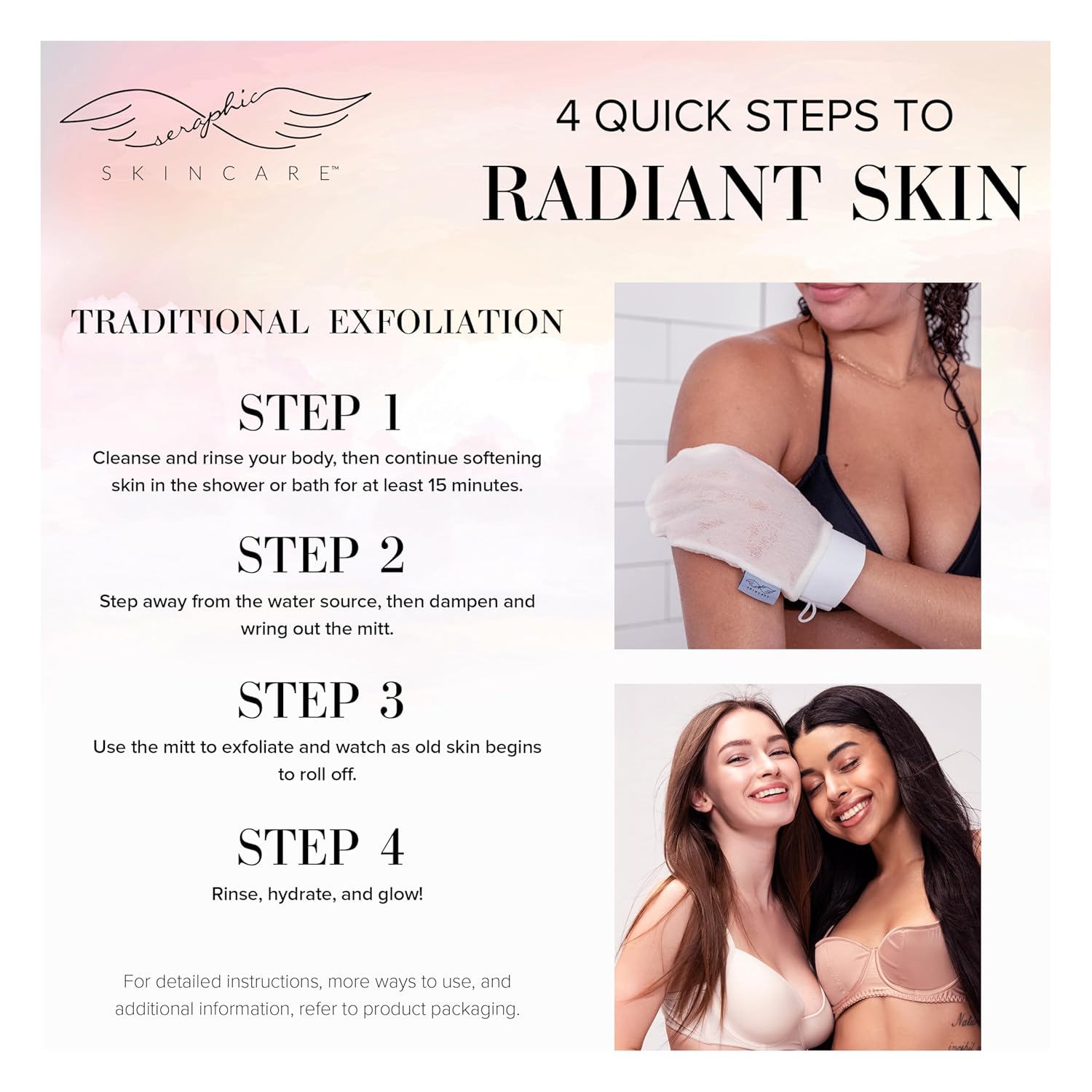 - INDULGE IN AN AT-HOME SPA EXPERIENCE – At Seraphic Skincare, we’re committed to offering premium exfoliating products at affordable prices. We invite you to immerse yourself in the luxurious experience of exfoliation and self-care at home by adding our Korean-style exfoliating mitts to your beauty routine. Get that glow you’ve been dreaming about!