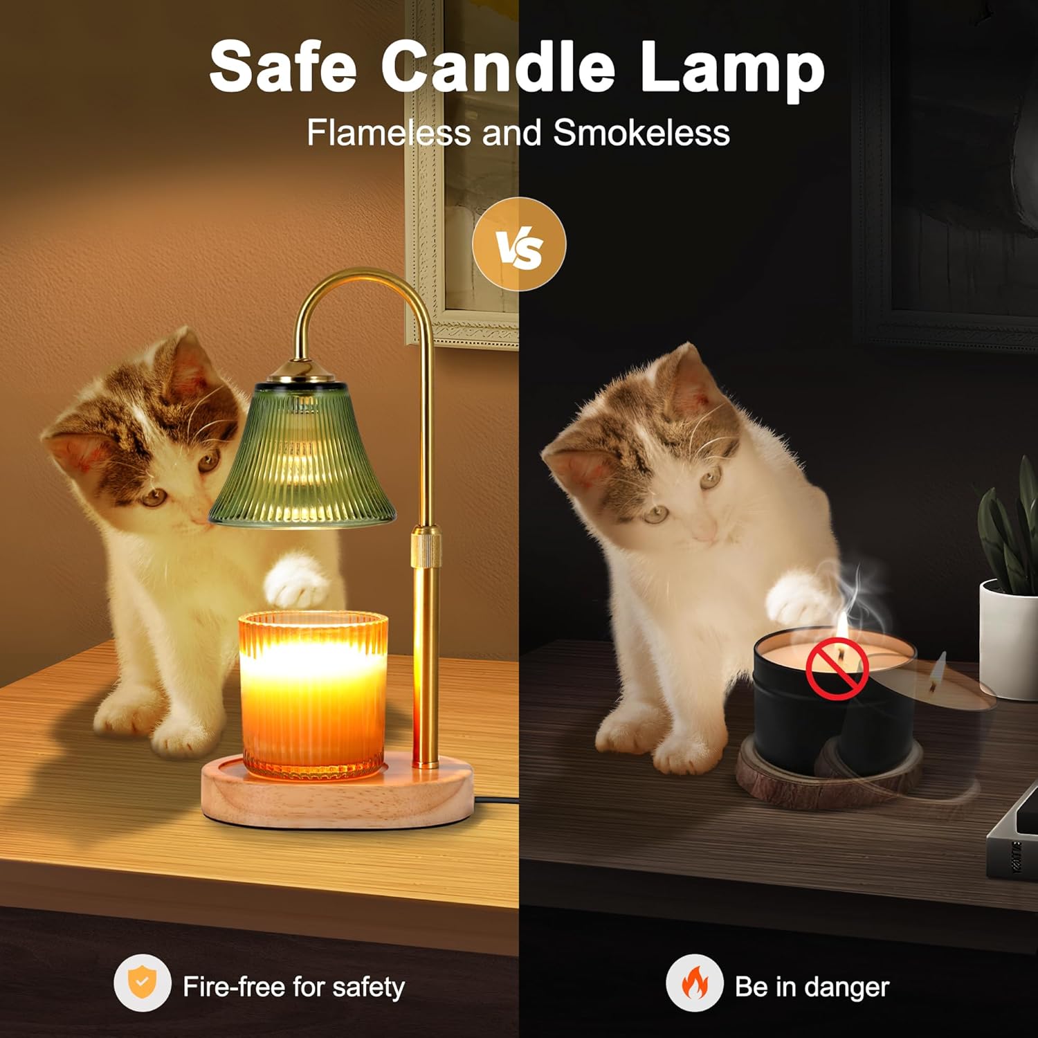 Candle Warmer Lamp, Height Adjustable Candle Warmer with Timer & Dimmer, Electric Candle Lamp with 2 50W Bulbs, Wax Melt Warmer for Scented Jar, Vintage Home Decor Glass Shade(Light Green)