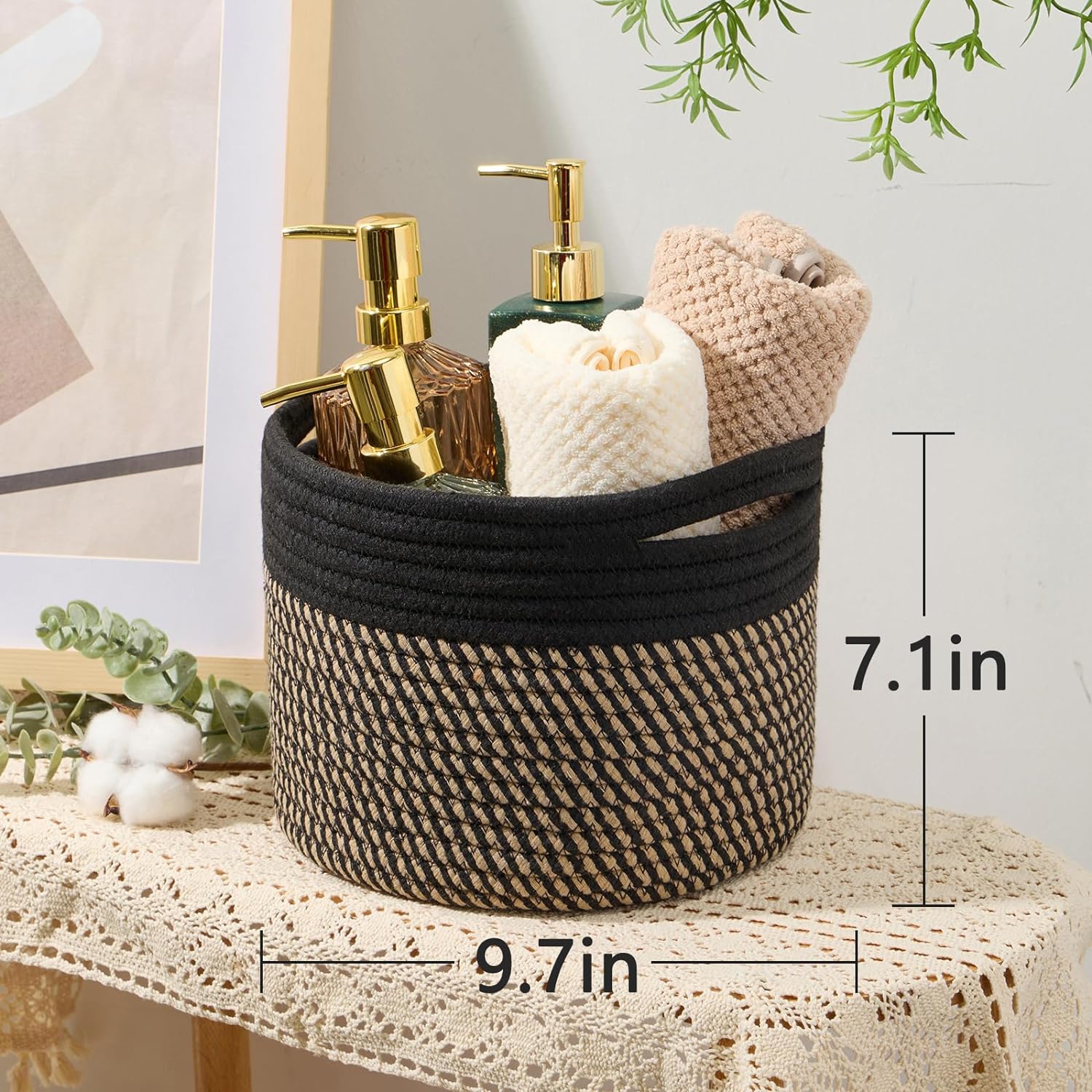 Small Basket for Organizing | Cube Shelf Closet Storage Baskets | 9.7×9.7×7.1” | Woven Rope Gift Basket | Nursery | Round 3 Packs Black Brown