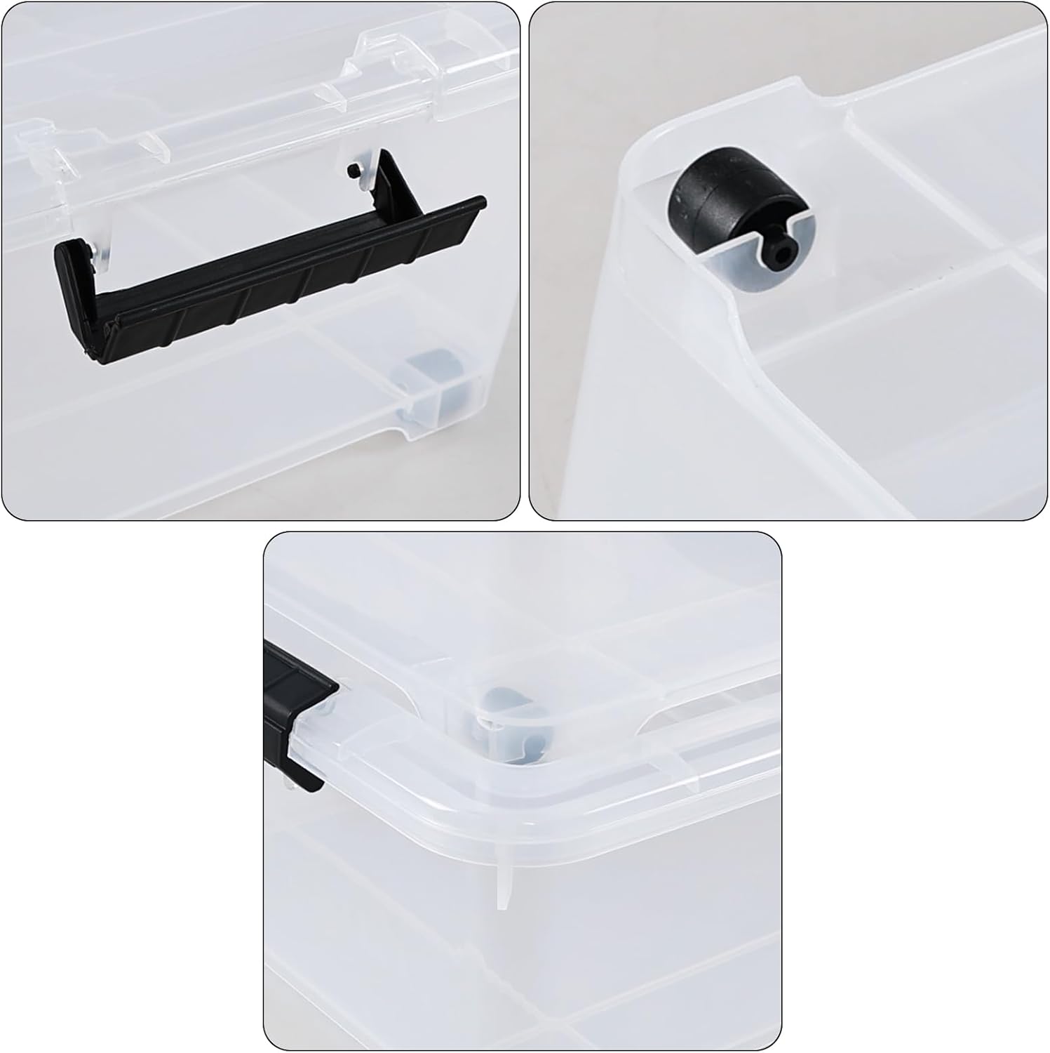 • Adopted the sturdy buckle handle and seal lid tightly attach to the storage box, makes the stored contents always dry and dust-free