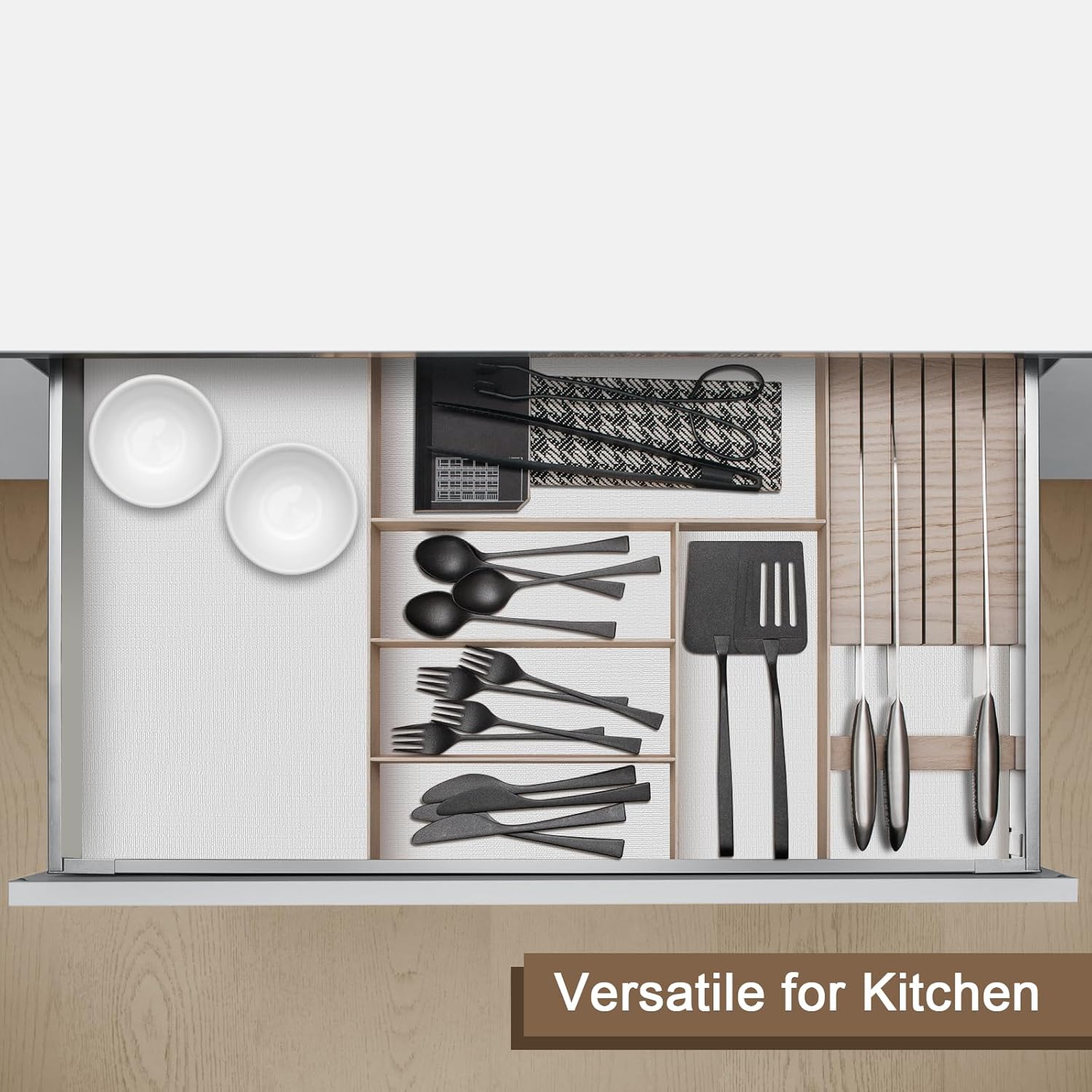 • 【EASY TO CUT】Shelf liner non slip is easy to cut and suitable for all kinds of spaces Whether it's the kitchen, bathroom, study or bedroom, this cabinet shelf liner is a perfect match. Its design makes it suitable for all occasions and helps you keep your space neat and organized.