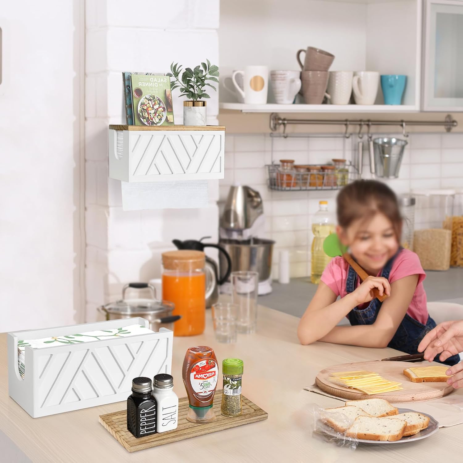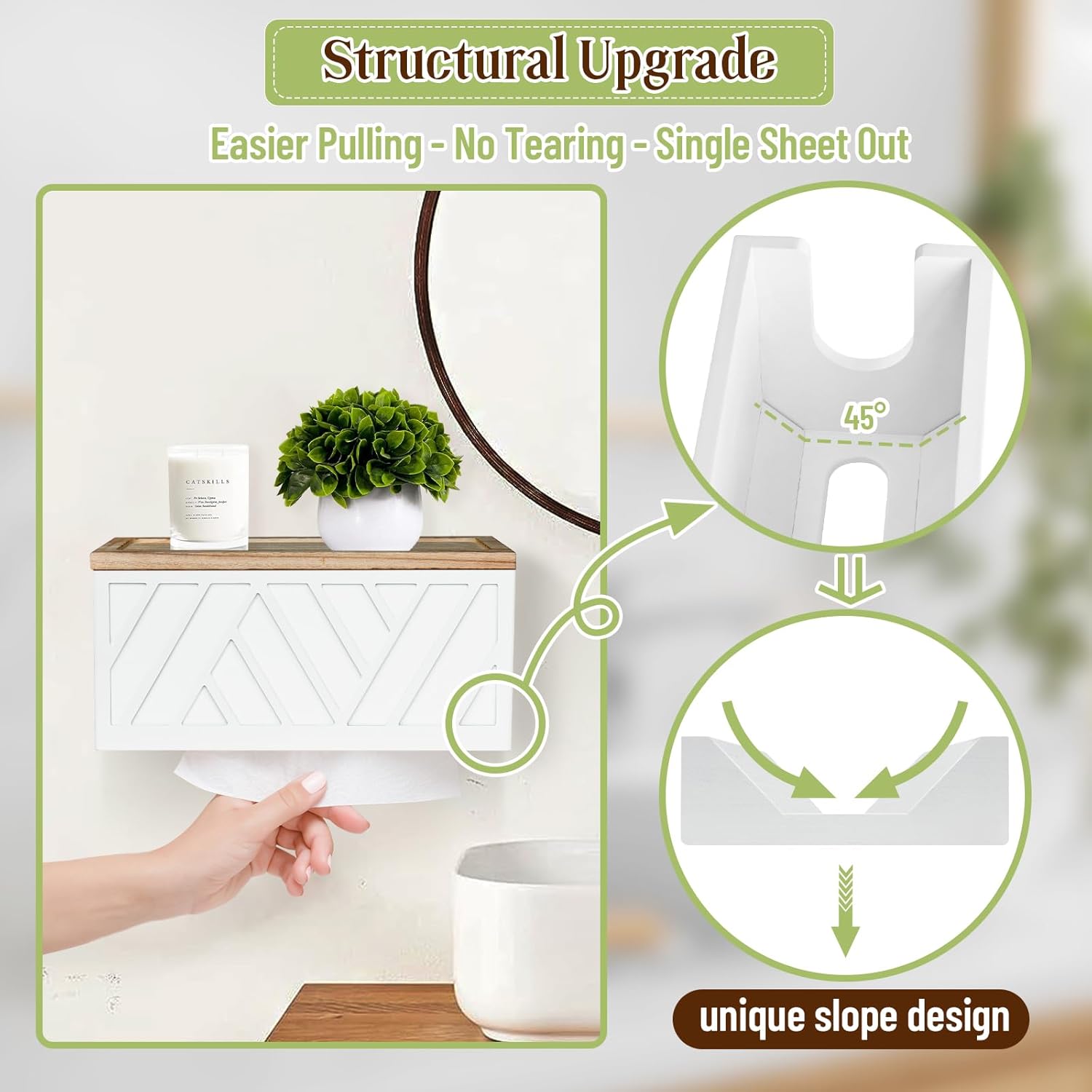 - 【Set of 2 Paper Towel Holder Wall Mount with Lid】No more need bulky plastic commercial paper towel dispensers! Our wood paper towel dispenser measures is 12”L x 5”W x 5.2”H and which is perfect for storing c-fold, z-fold, trifold hand towel, paper towel, face towel for kitchen, bathroom and living room. The paper towel dispenser holder wall mounted is designed with removable lid, you can use it as a separate tray for keeping your accessories in order.(Note: Not suitable for roll paper towel)