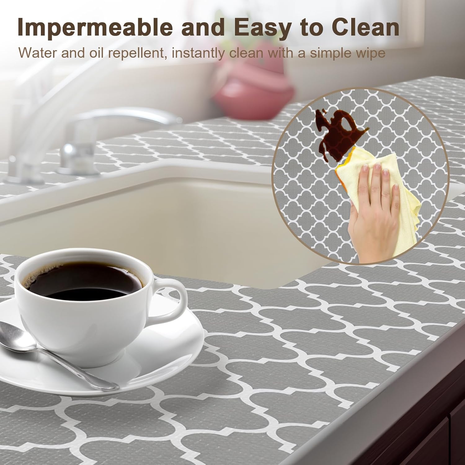 • 【NON-ADHESIVE】Our shelf liners for kitchen cabinets non-adhesive, avoiding the damage that glue can cause to cabinet, drawer, table and shelf surfaces.