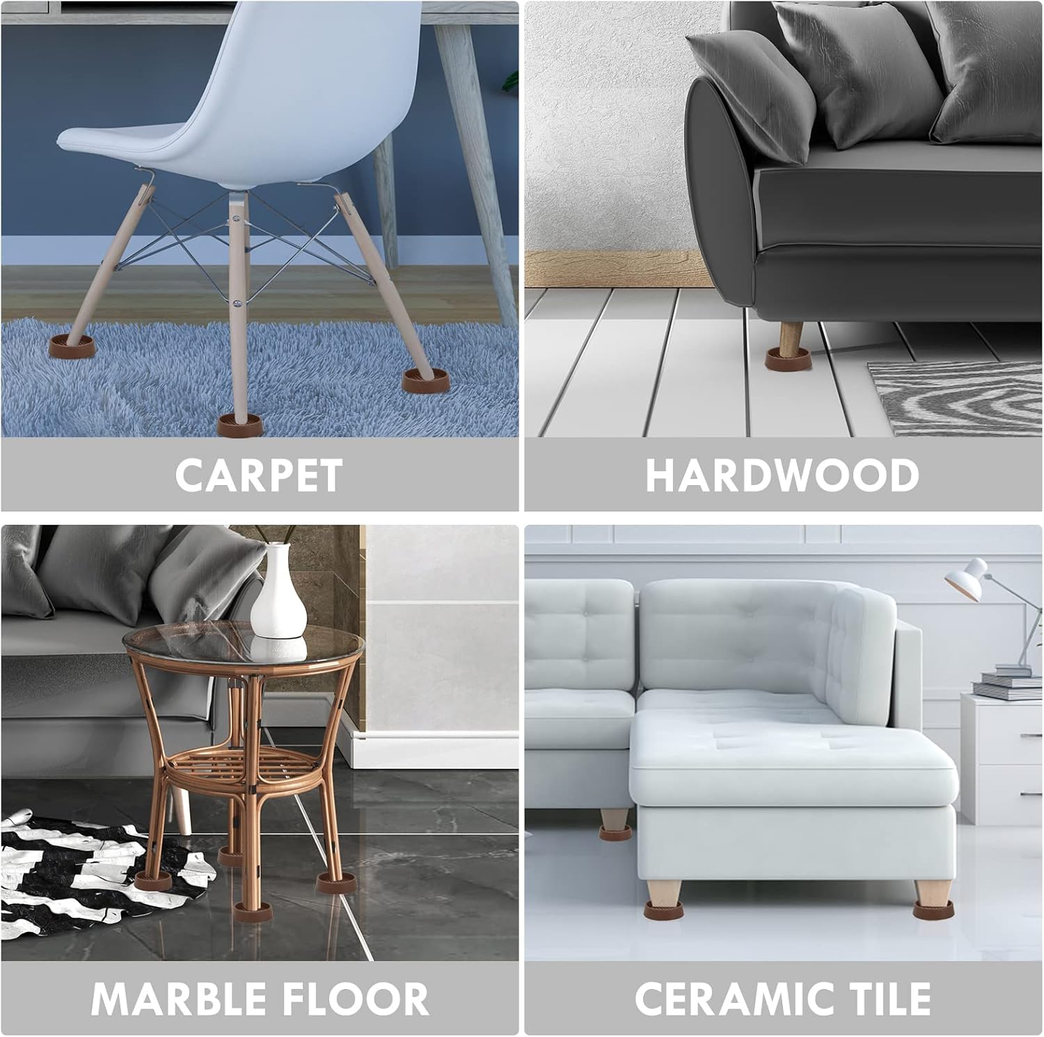 • ENOUGH SIZE - 4 Inch brown round rubber caster cups, each round rubber caster cup is big enough to hold the legs of most furniture and the dark chocolate brown color will blend seamlessly with wood and complement various metal finishes.
