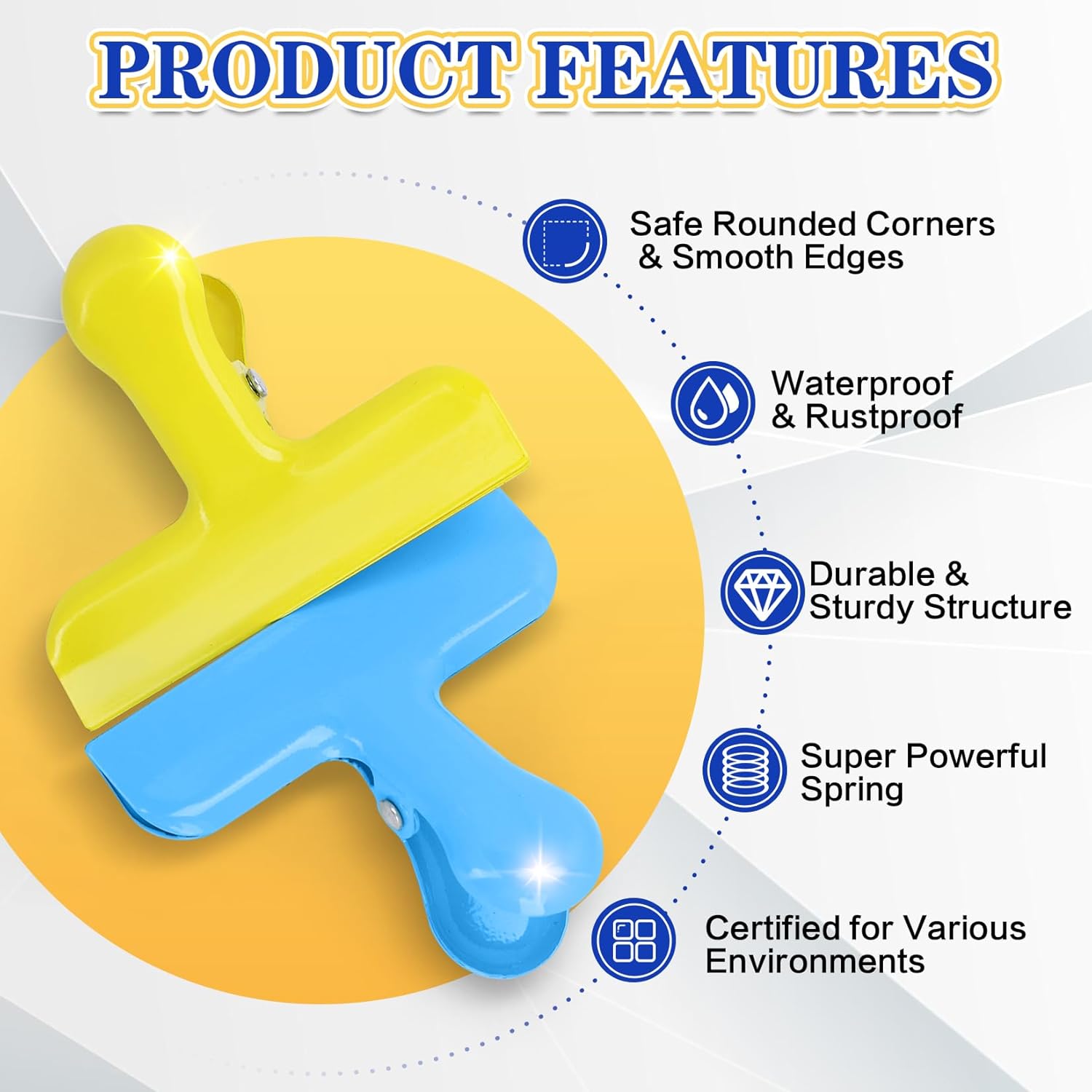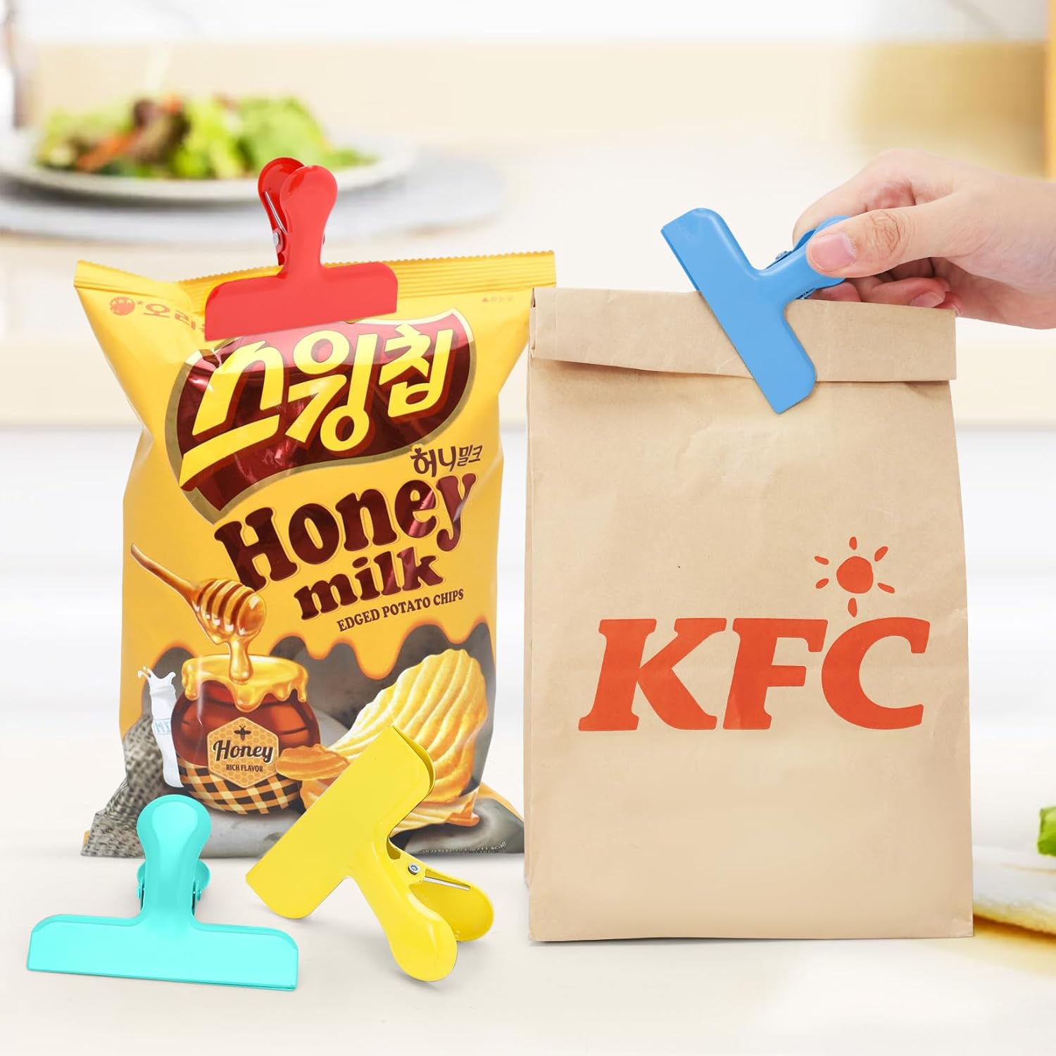 • STANDARD SIZE: Each of our heavy-duty food bag clips measures 3 inches wide and features a powerful spring that exerts significant force, ensuring a tight and secure seal. This makes our snack clips ideal for a wide range of bag sizes, from small snack bags to larger food storage bags, keeping contents fresh and fully sealed.